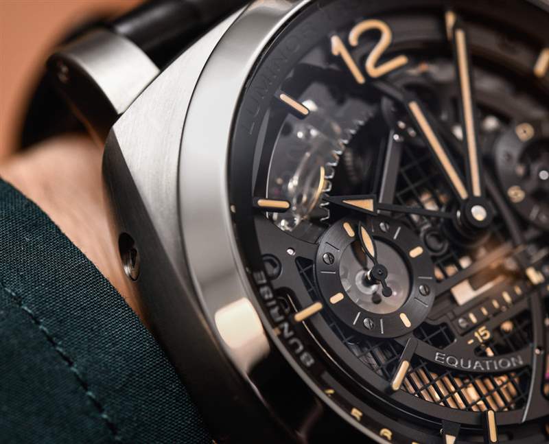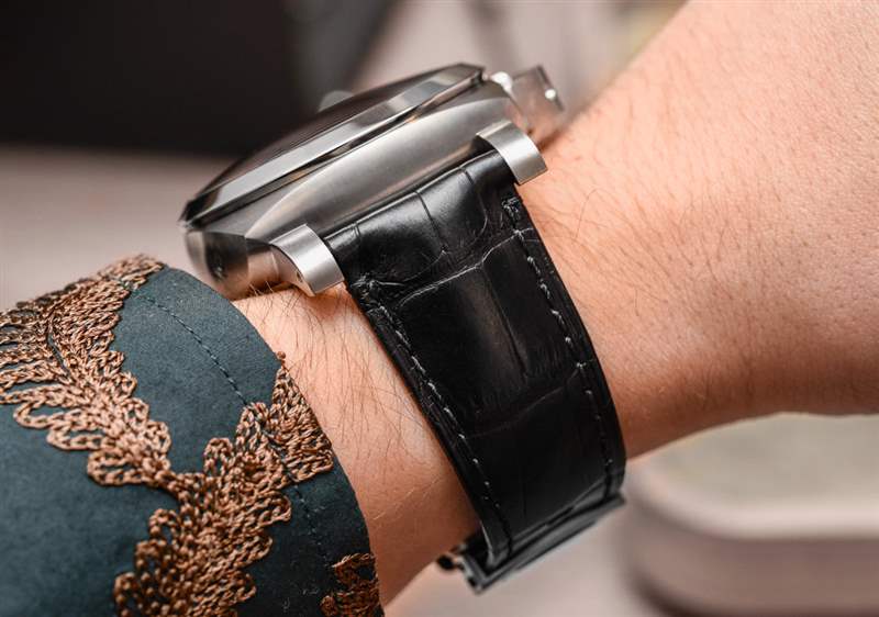 鑒于每個 L’Astronomo Luminor 1950 Tourbillon Moon Phases Equation Of Time GMT 時計都是“定制”的,沛納海還可以定制表殼材料、飾面,甚至表盤和指針顏色。如果您不使用 50 毫米寬的表殼,他們不能做的是讓這款大表更小。在這種形式中,表殼采用拋光和拉絲鈦金屬制成——看起來很可愛,質(zhì)量上乘。該表殼還具有 100m 的防水深度——使其至少像沛納海手表一樣耐用。具有諷刺意味的是,甚至一些沛納海“運動手表”的防水深度也只有 30m(盡管該品牌的整個主題都是意大利潛水表)。