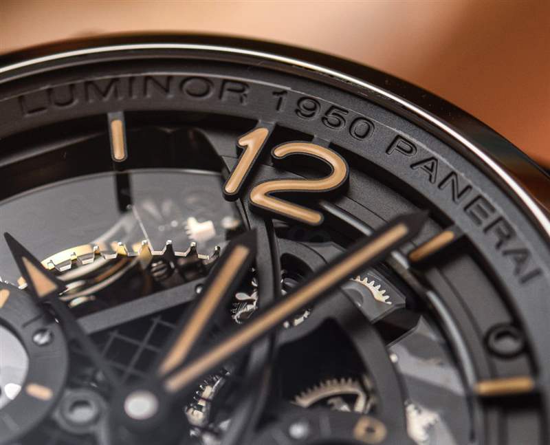沛納海在日期指示器方面做了很多工作。為什么?原因是如果您仔細(xì)觀察,您會注意到雖然您可以在日期窗口中看到日期數(shù)字,但即使表盤是鏤空的,您也無法看到日期輪。酷吧?那是因為沛納海設(shè)計了一個使用兩片偏光玻璃的系統(tǒng)——其中一張是日期盤本身。在日期窗口的正上方,偏振平面以某種方式重疊,以便讓下盤的一半光線進(jìn)入,因此,您可以看到日期。鑒于極化的工作原理,日期盤在其他任何地方幾乎都看不見。