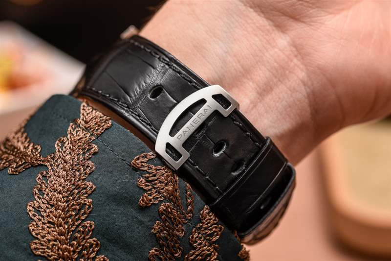 幾乎很容易忘記,內(nèi)部制造和開發(fā)的沛納海 Calibre P.2005/GLS 手動上鏈機(jī)芯也有一個陀飛輪。唉,它是在幾乎所有“超級奢華”手表都需要陀飛輪的時候開發(fā)的。如今,陀飛輪并沒有完全過時,但它作為一種獨特的身份象征的出現(xiàn)確實減輕了很多重量。P.2005/GLS 中的陀飛輪實際上有點新奇,因為它的旋轉(zhuǎn)軸。這款沛納海腕表中的陀飛輪不是在陀飛輪框架的垂直軸上旋轉(zhuǎn),而是在其水平軸上旋轉(zhuǎn)。我也喜歡這是罕見的 4Hz(28,800bph)陀飛輪機(jī)芯,而不是 3Hz,這是大多數(shù)陀飛輪擺輪的工作頻率。
