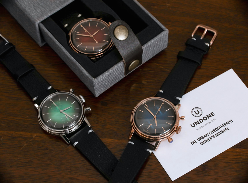 Undone 告訴我,這些表盤是由一家在中國以生產(chǎn)吉他而聞名的工廠生產(chǎn)的。一些吉他的琴身被賦予了類似的裝飾性漸變漆,這與用于表盤的技術相同。找到這樣的供應商對于能夠以低于標準 Undone Urban Vintage Chronograph 手表 100 美元的溢價(帶有額外的表帶)提供這些表盤至關重要。