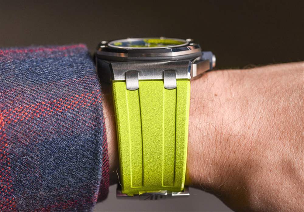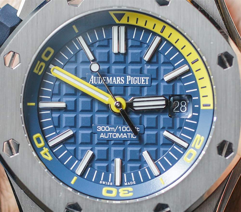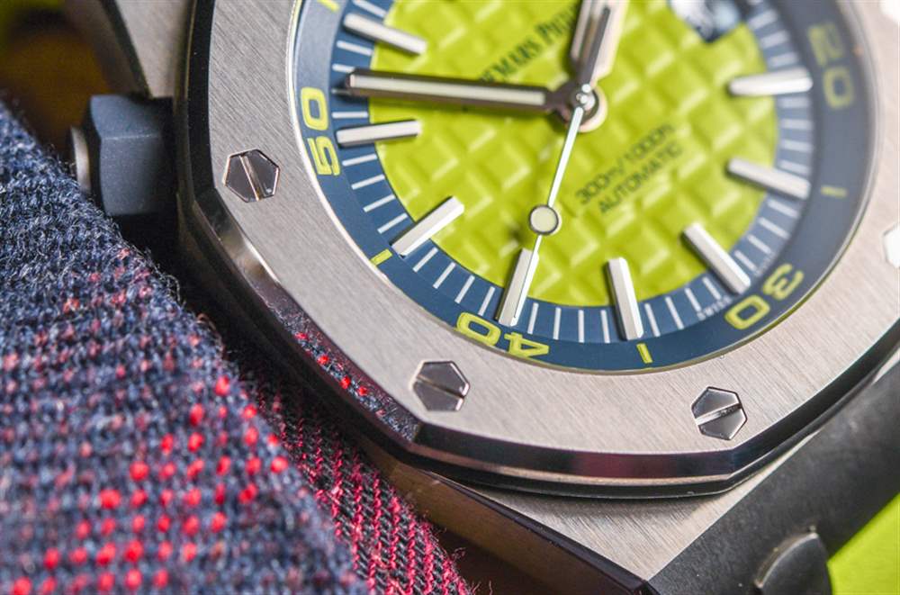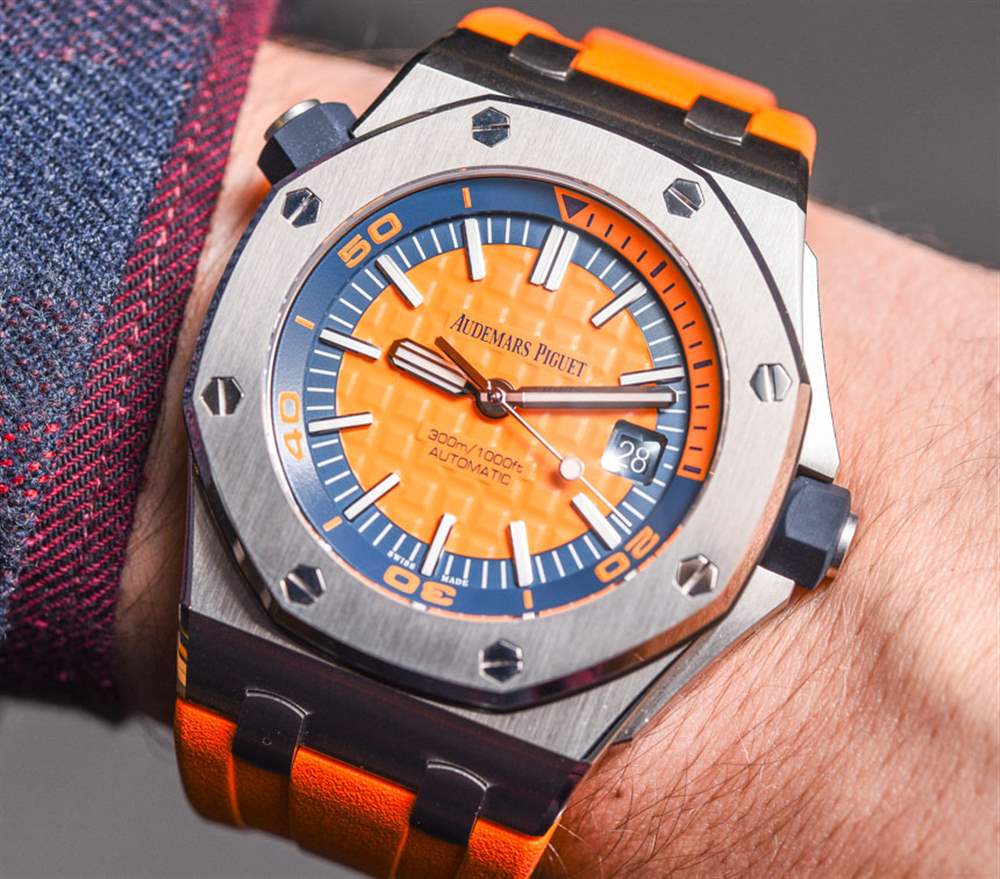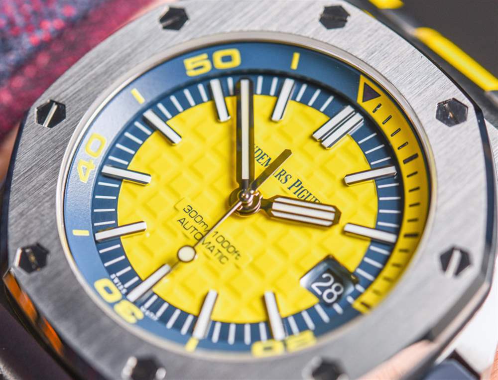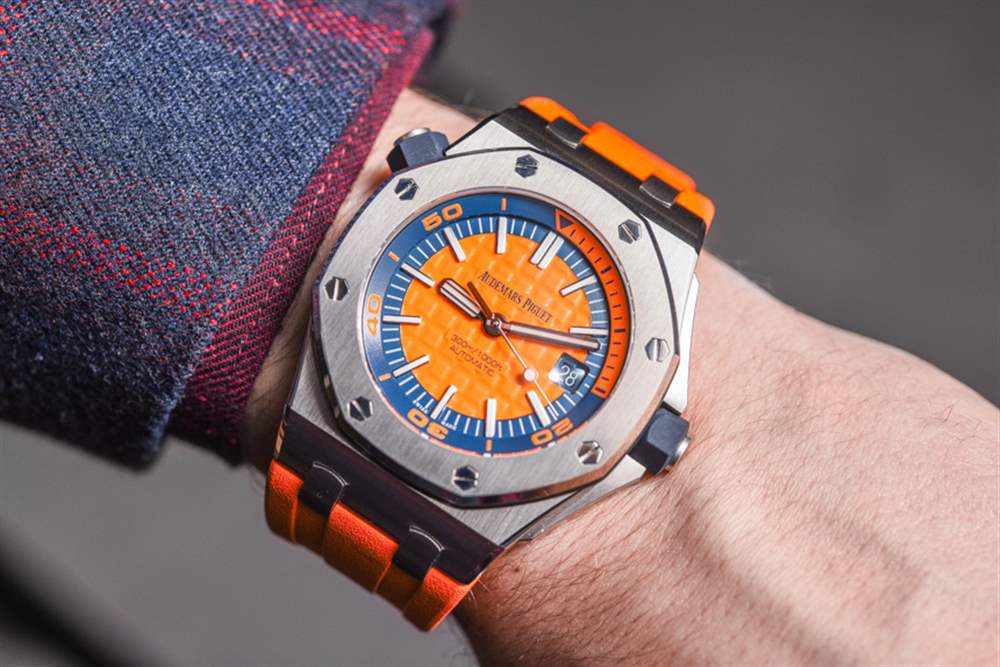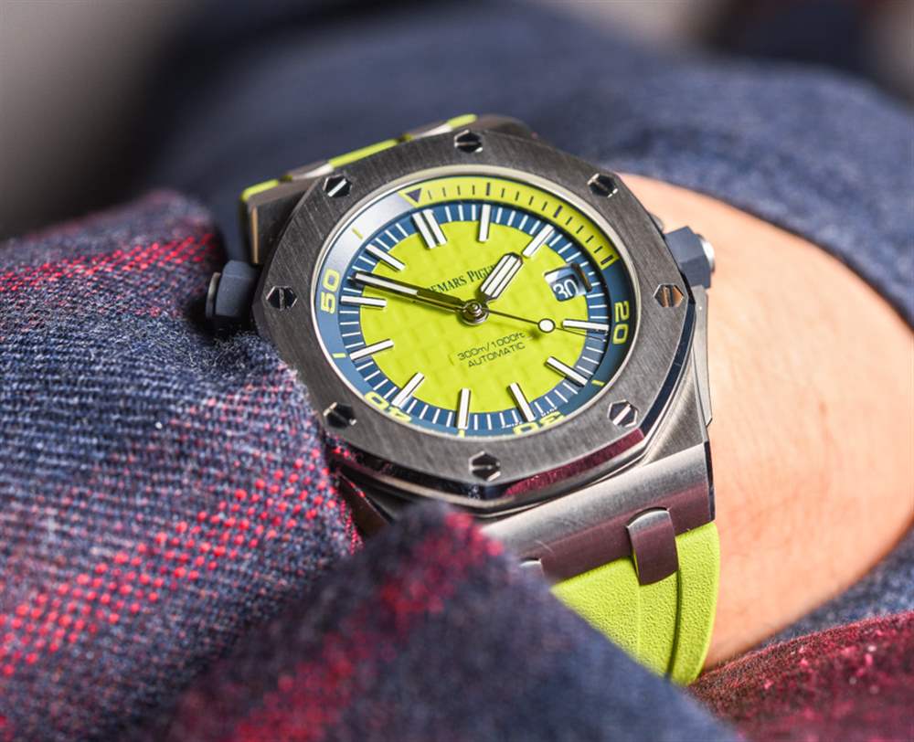 去年在 2016 年 SIHH 上,愛彼推出愛彼皇家橡樹離岸型潛水計(jì)時(shí)碼表時(shí),玩弄了將皇家橡樹離岸型潛水員裝扮成華麗色彩的想法。我發(fā)現(xiàn)有趣的是,他們首次推出了皇家橡樹離岸潛水員計(jì)時(shí)碼表(在這里動(dòng)手),完全以黃色、橙色、藍(lán)色和綠色等狂野的顏色推出……沒有一個(gè)會(huì)被認(rèn)為更保守的模型。當(dāng)然,這是一個(gè)有趣的舉動(dòng)。到目前為止,愛彼皇家橡樹離岸型潛水計(jì)時(shí)碼表除了大膽的顏色外,還沒有任何款式可供選擇。