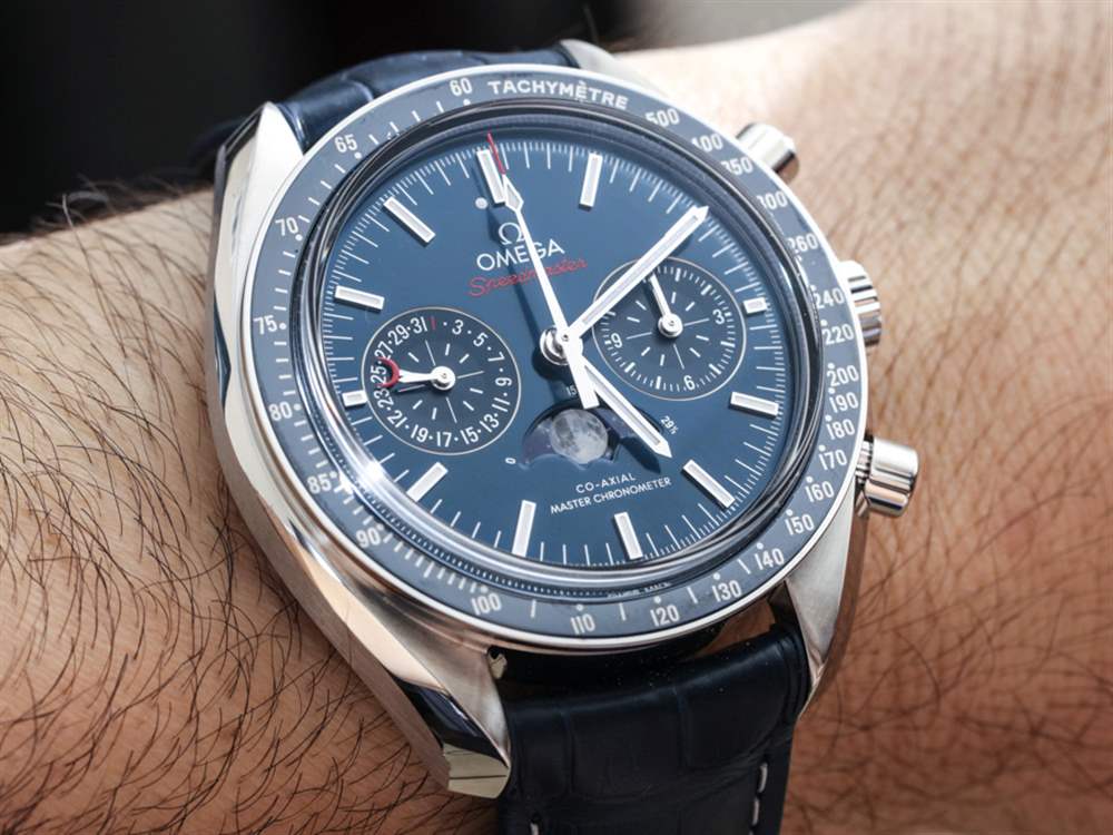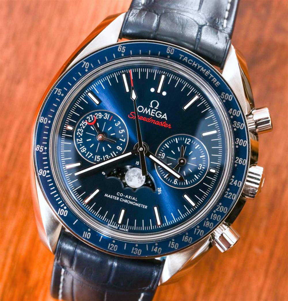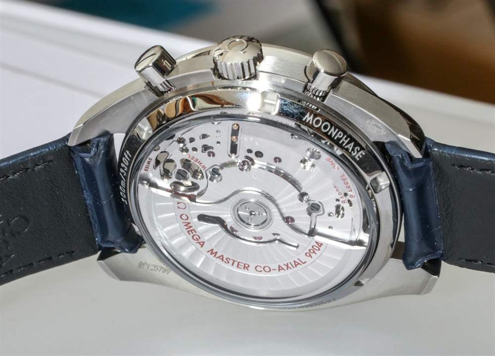 歐米茄 Speedmaster Moonwatch Co-Axial Master Chronometer Moonpahse Chronograph 采用 9904 型機芯(也為 9905 配備用于貴金屬版本的黃金部件)機芯,這是第一款為 Speedmaster 系列提供同軸至臻天文臺表的機芯。2017 年,歐米茄將在歐米茄超霸同軸至臻計時碼表系列的其余產品中推出不帶月相復雜功能的 9900 機芯。您購買這款特殊手表的原因是因為月相指示器以及它具有同軸至臻天文臺自動機芯的事實。