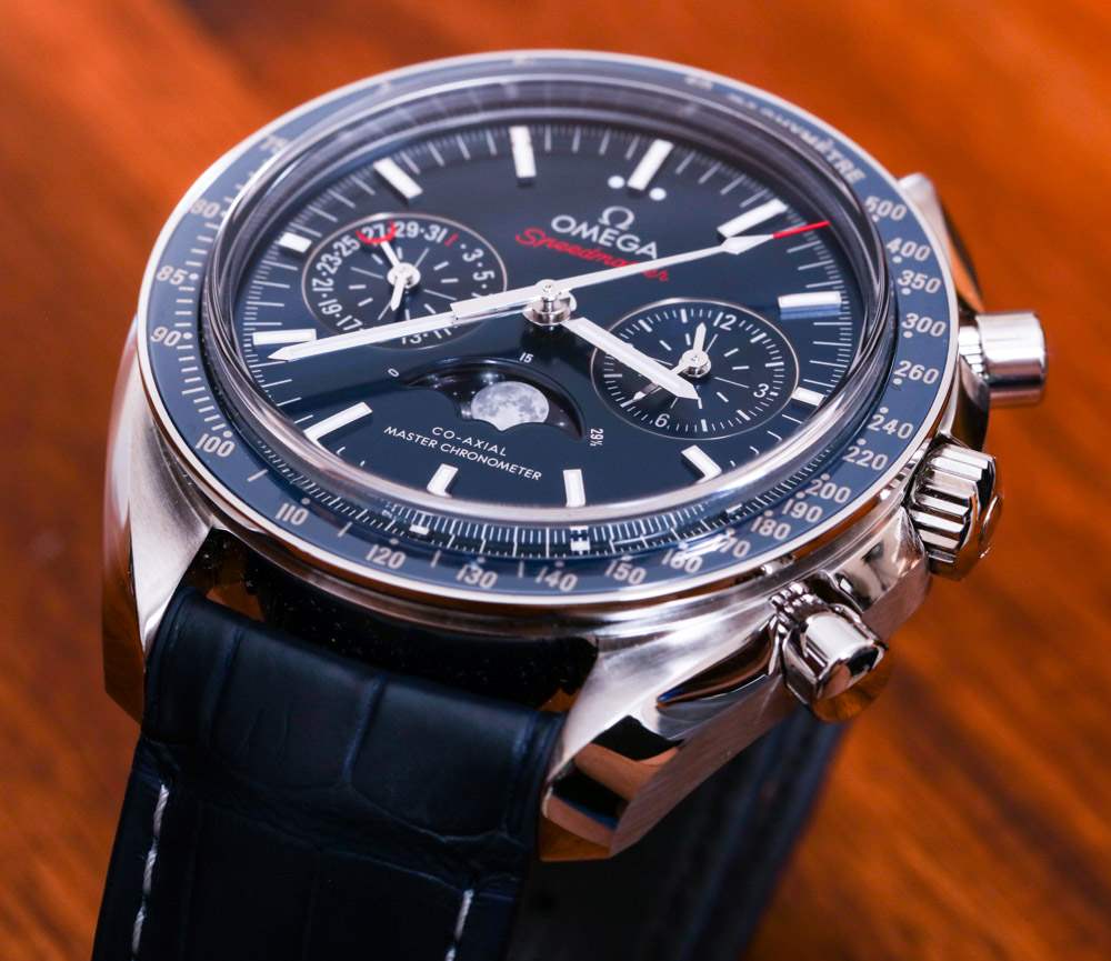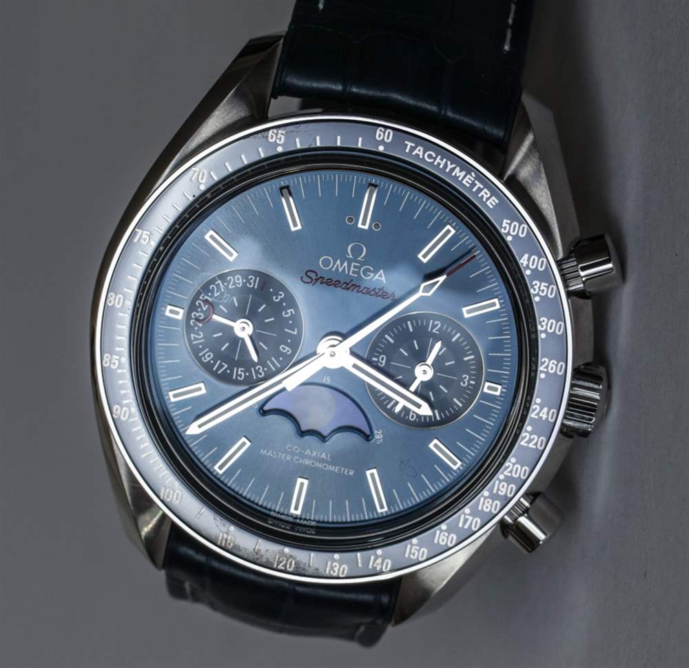 速霸產品命名約定并沒有多大幫助,因為它們經常令人困惑且彼此相似,或者抽象且難以記憶。例如,根據歐米茄網站,這款手表的官方名稱是“Omega Speedmaster Moonwatch Omega Co-Axial Master Chronometer Moonphase Chronograph 44.25 MM”,甚至不包括參考編號。這個名字實際上包括兩次“歐米茄”。唯一的原因是歐米茄有很多類似主題的手表(即使時計本身可能有很大不同),描述它們變得非常具有挑戰性。過去也有其他歐米茄超霸表款配備月相指示器和計時碼表。事實上,其中一款仍然有售,表殼幾乎相同,但表盤布局和機芯不同。
