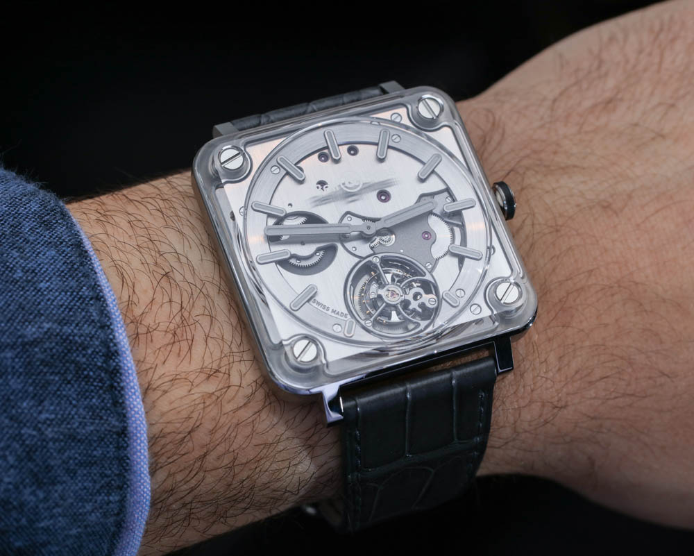 Bell & Ross 這樣做完全是為了視覺奇觀——而且它似乎奏效了。上次遇到類似的概念時,是在Piaget 900P(這里是 aBlogtoWatch 動手實踐)中,將機芯板和表殼融合在一起,以制造世界上最薄的機械表機芯。雖然 Bell & Ross BR X2 Tourbillon Micro-Rotor Automatic 實際上比該品牌的其他方形外殼“Instrument”手表感覺更薄,但這并不是為了打破尺寸記錄。更重要的是,它看起來很酷,同時也是運動書呆子可以忠實地支持的東西。?