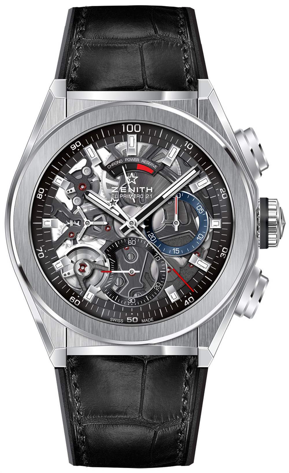 Zenith Defy El Primero 21 在“Biver 運動手表 DNA”方面確實擁有棱角分明的邊緣與更大的圓形形狀、表殼和表帶之間的無縫結合、突出的表冠和按鈕,以及完全鏤空的表盤。后一個組件可能是區分機械表與……好吧,那些非機械表的更大戰略的關鍵部分。這種想法可能是,當有人花很多錢購買機械表來購買機芯時,讓他們直觀地看到機芯(在表殼的正面和背面)并不是一個糟糕的主意。