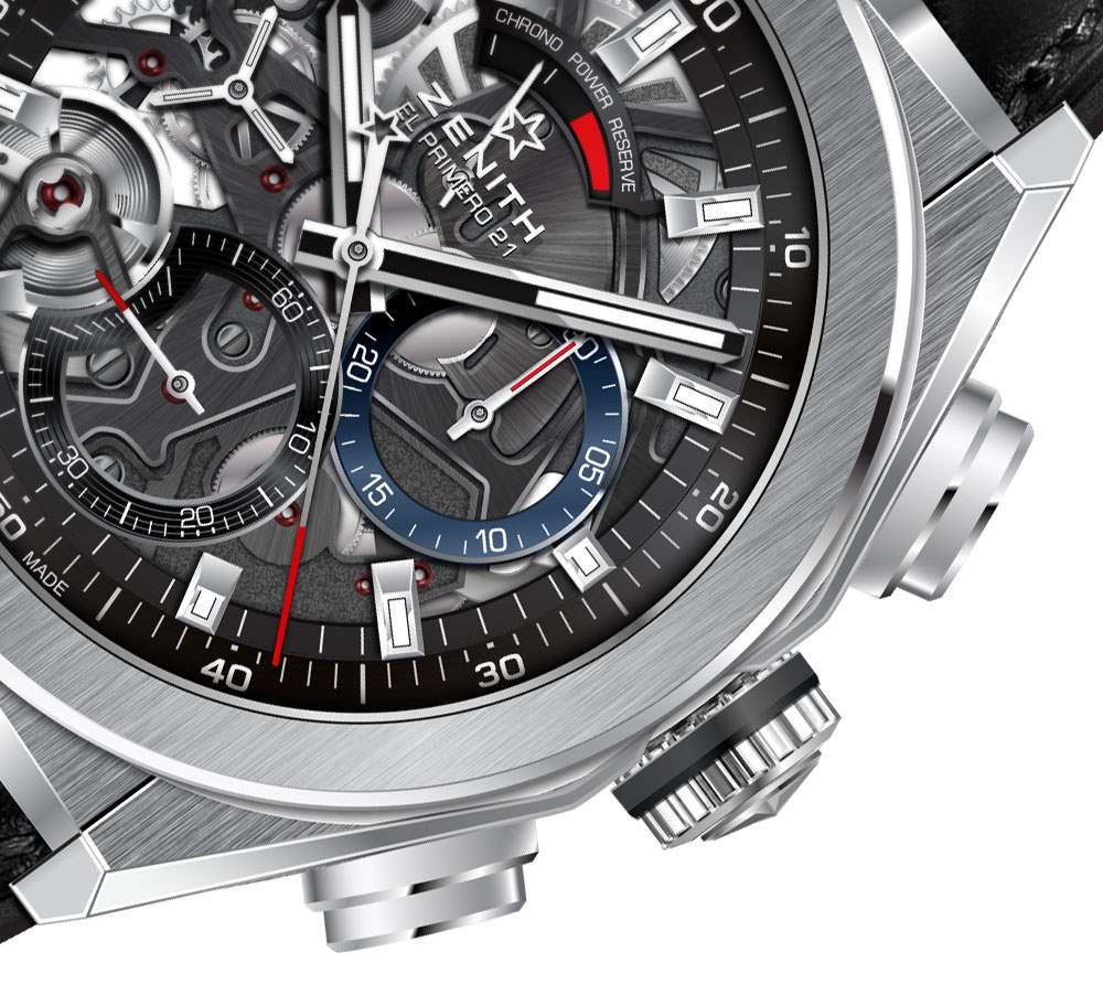 2017 年真力時 Defy El Primero 21 的三個版本包括帶有鏤空表盤的天然鈦金屬表殼(編號 95.9000.9004/78.R582),帶有鏤空表盤的黑色涂層鈦金屬表殼(編號 24.9000.9004/78. R582),以及非鏤空表盤和天然鈦金屬表殼型號(參考 95.9001.9004/01.R582)。后一種模型將是模型中更清醒、更經典的模型,但運動看起來很有趣,骨架化的現代視覺效果可能會吸引更多人。