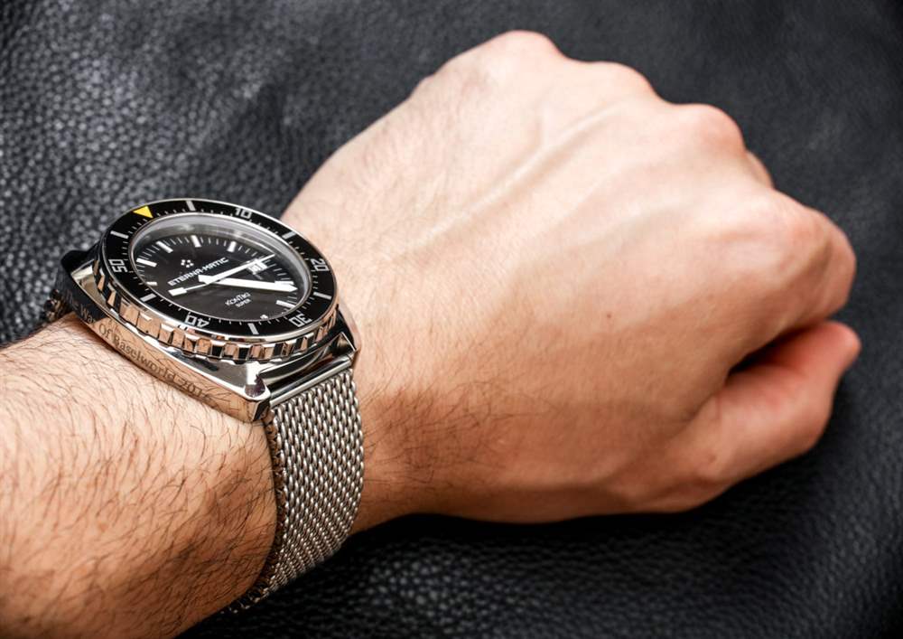 Eterna 為Heritage Super KonTiki 1973 提供了一款非常正宗的復古風格網狀金屬手鏈,它……嗯,很難調整尺寸。我們的每個團隊成員都選擇了不同的 Eterna 佩戴方式,但實際上我決定使用 Eterna 的不同網狀金屬手鏈,但它配備了更新的型號。我從Eterna Super KonTiki Date 手表上借了手鐲(aBlogtoWatch 評論在這里)。乍一看,這些手表非常相似。事實上,這兩款 Super KonTiki 型號均采用 200m 防水、44mm 寬的拋光鋼表殼,并具有相似的顏色主題。