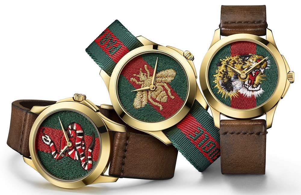 這些手表大多采用將表帶的主題延續到表盤上的主題,以實現外觀整潔、具有凝聚力的設計,當然具有潛力。我在其他手表上看到過這種情況,表盤上的條紋反映在表帶上(反之亦然,但你想看它),在許多情況下它看起來很漂亮。除了 Gucci Marché des Merveilles 系列之外,該品牌還發布了至少四個帶有動物裝飾表盤的 Gucci Dive 新版本。