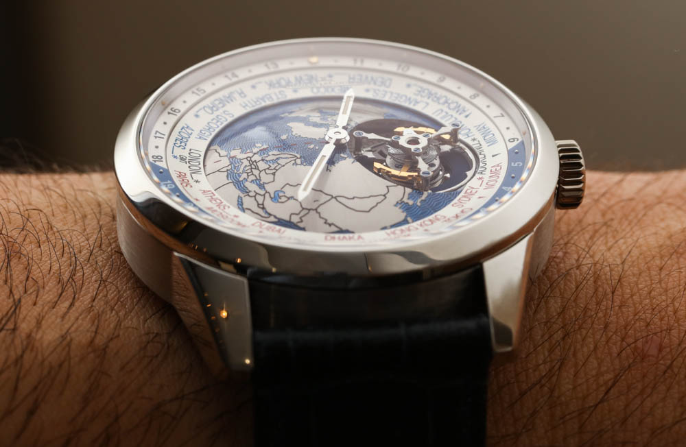 飛行陀飛輪似乎直接從表盤中出來,而表盤大部分是圓頂和三維的,這一點增強了這一點。非常酷的是,陀飛輪是如何通過世界時間盤繞著表盤運行的(有些人會稱之為陀飛輪中的陀飛輪)。是的,它確實會阻止讀取一些表盤,但包含陀飛輪并沒有丟失任何真正的功能。對于那些真正喜歡世界計時器并且也想要陀飛輪機械復雜性(和奢華地位)的人來說,這是一個奇妙的元素組合。