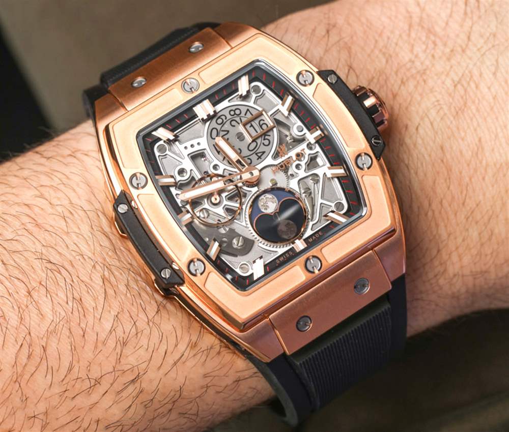 早在 2011 年,Hublot最初推出的手表最終成為“Hublot Spirit of Big Bang”。我記得在日內瓦舉行的活動,當時讓-克勞德·比弗宣布他“接受”了生產手表的請求,其內容類似于“如果宇舶表生產一款受理查德·米勒啟發的手表會怎樣?”?這兩家高端手表制造商傾向于以非常不同的價格提供產品(盡管兩者都非常高端),并相互尊重。由此產生的作品是“宇舶杰作”,我可以在這里親身體驗。它也是我們今天在這里看到的 Hublot Spirit Of Big Bang Moonphase 手表的直接前身。