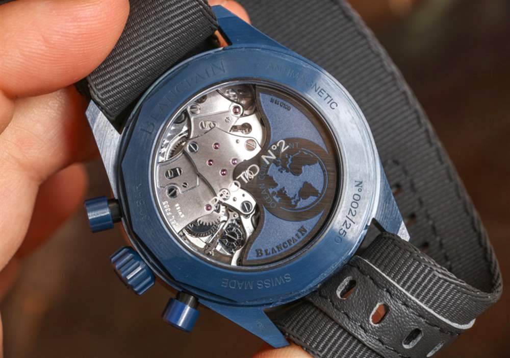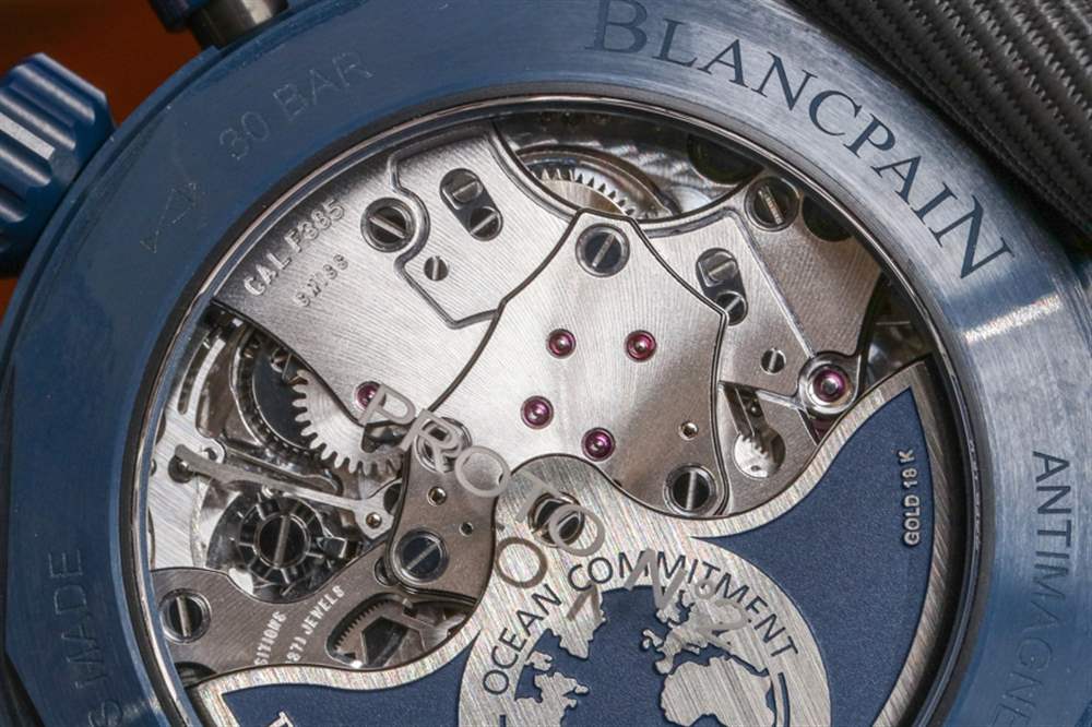 除了美學之外,一個很好的理由是寶珀五十噚深空飛返計時碼表內(nèi)部的機芯,這是內(nèi)部制造的寶珀口徑 F385 自動計時碼表。透過表殼背面可以看到機芯,不難看出它的設計和裝飾都很可愛。現(xiàn)代的線條和形狀裝飾著這款現(xiàn)代機械機芯,它也恰好擁有 5Hz (36,000bph) 的工作頻率。這與著名的 Zenith El Primero 相同,比大多數(shù)標準 4Hz 計時手表快 1Hz。