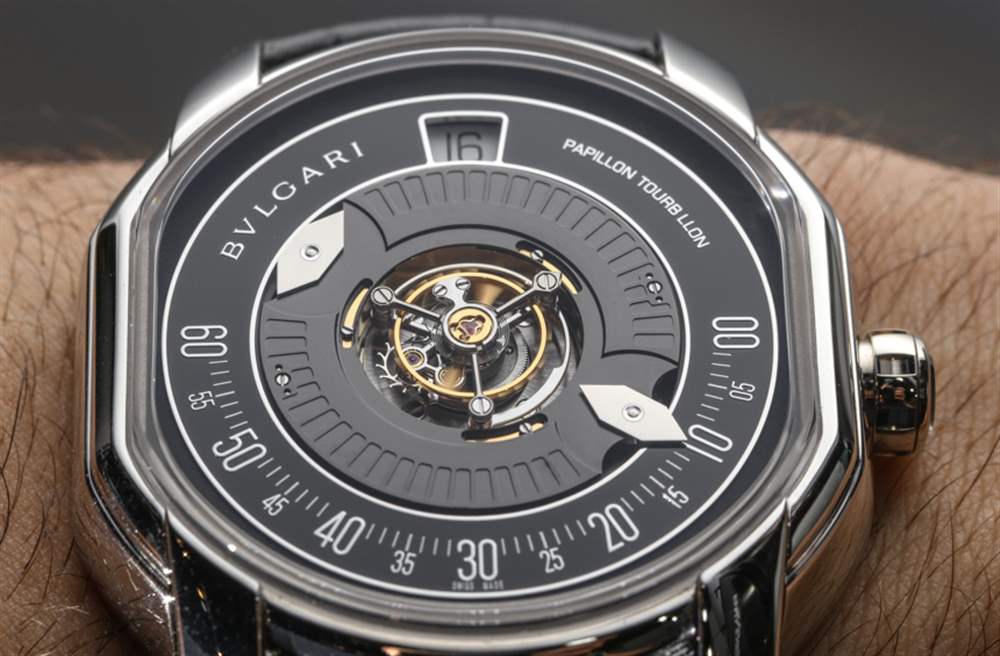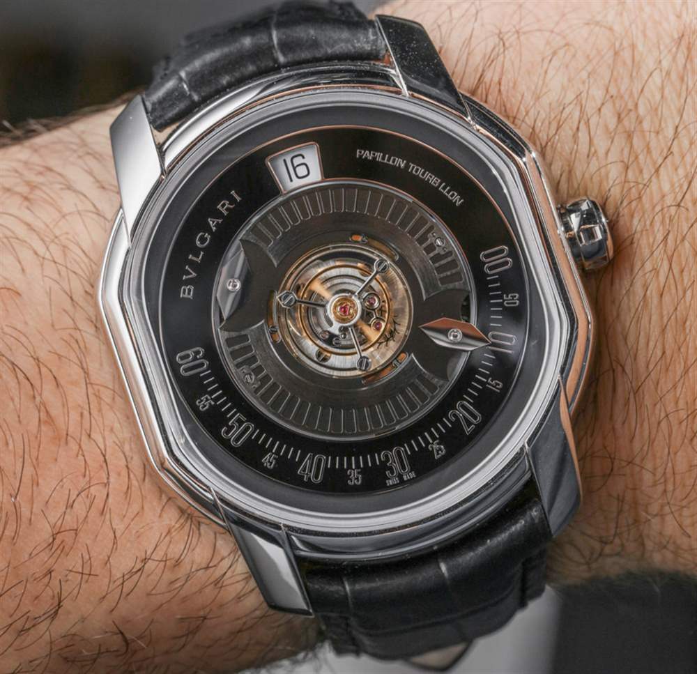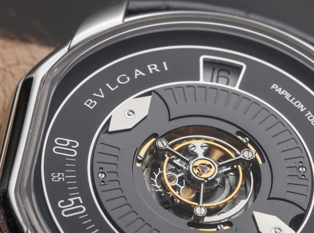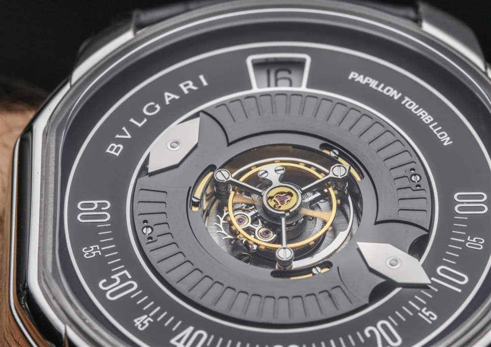 我唯一的抱怨是,寶格麗決定對指針進行鏡面處理,這使得它們在表盤上的各種照明情況下難以看到。讓這些已經很小的手在會議記錄中更加引人注目會是一個好主意。不過,也許在未來,寶格麗總共只生產 40 枚 Papillon Tourbillon Central。