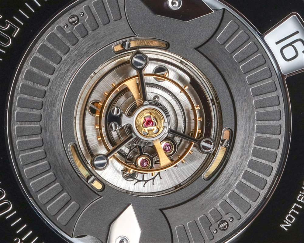 它在 Bulgari Papillon Tourbillon Central 中的工作方式是兩只指針交替指示分鐘,沿著構成表盤底部半圓的軌道。使用時指針會旋轉到位,當一個指針到達分鐘刻度的末端時,它會水平旋轉,而另一只指針則接管。這避免了需要逆行跳躍的手——這只會增加運動的磨損,因為所有的跳躍。指示分鐘的解決方案既優雅又聰明。