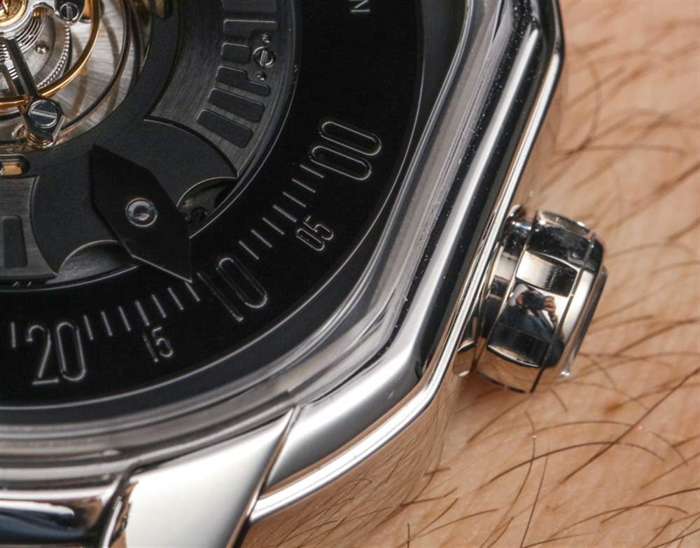 Bulgari Papillon Tourbillon Central 的下一個特點是如何顯示時間。在這里,我們有一個跳時機制,通過 12 點鐘位置的窗口以 24 小時格式顯示小時。實際上,我不確定我是否知道任何這種性質的跳時表更喜歡 24 小時制而不是 12 小時制,因為它需要更大的圓盤來放置所有數字。