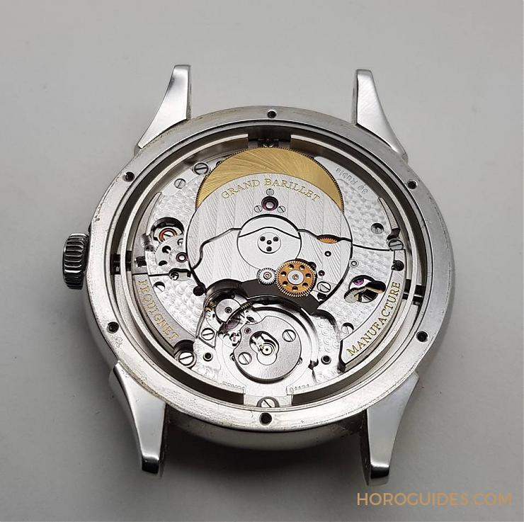 取下自動盤可見大發(fā)條盒,擁有72小時動能。