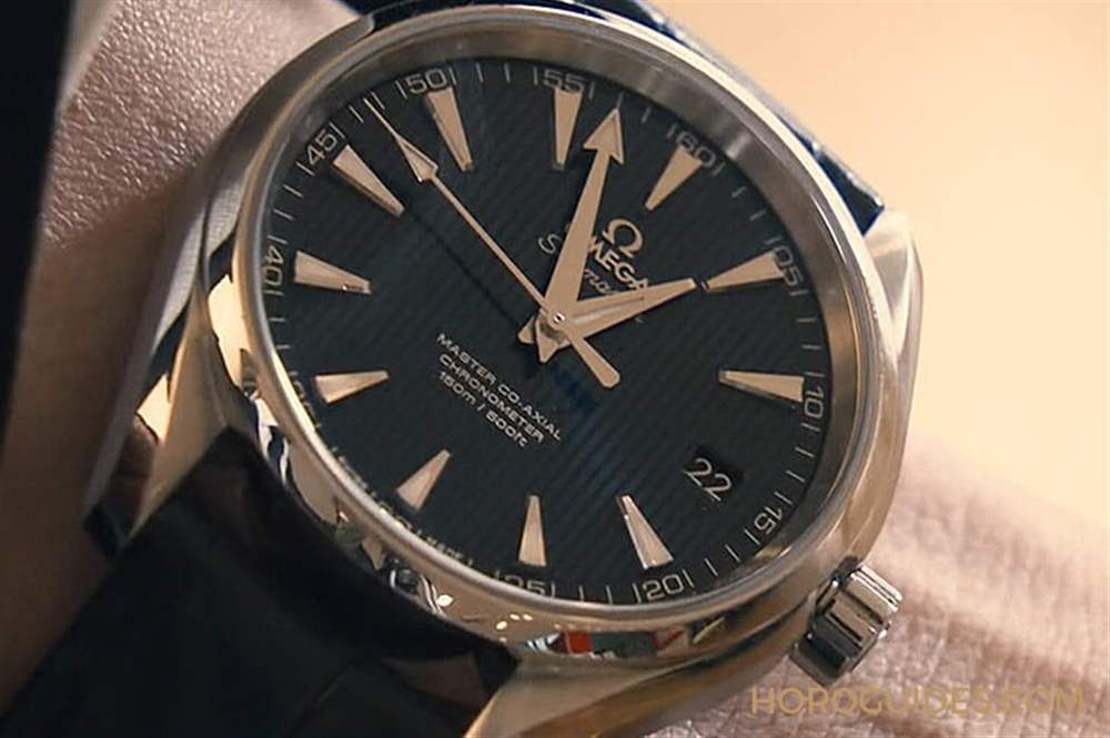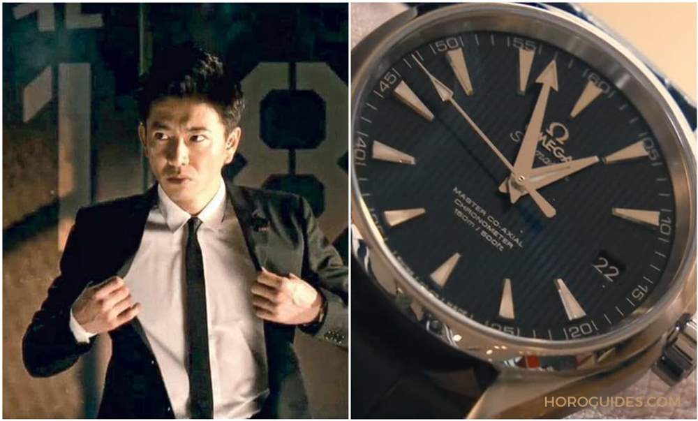 木村拓哉在片中飾演擁有神秘過去的貼身保鑣島崎章,手上佩戴的這只藍(lán)色表盤的歐米茄Aqua Terra Co-Axial Master Chronomaster,飾有獨(dú)特的水平線條「甲板紋」設(shè)計(jì),靈感源自豪華游艇上的木質(zhì)甲板。指針及時(shí)標(biāo)均覆以白色Super-LumiNova超螢光涂層,防水150米。不過Aqua Terra 2017年新公布推出表盤直條紋改橫條紋的版本,日期窗也從3點(diǎn)鐘改到6點(diǎn)鐘。改版三大重點(diǎn)