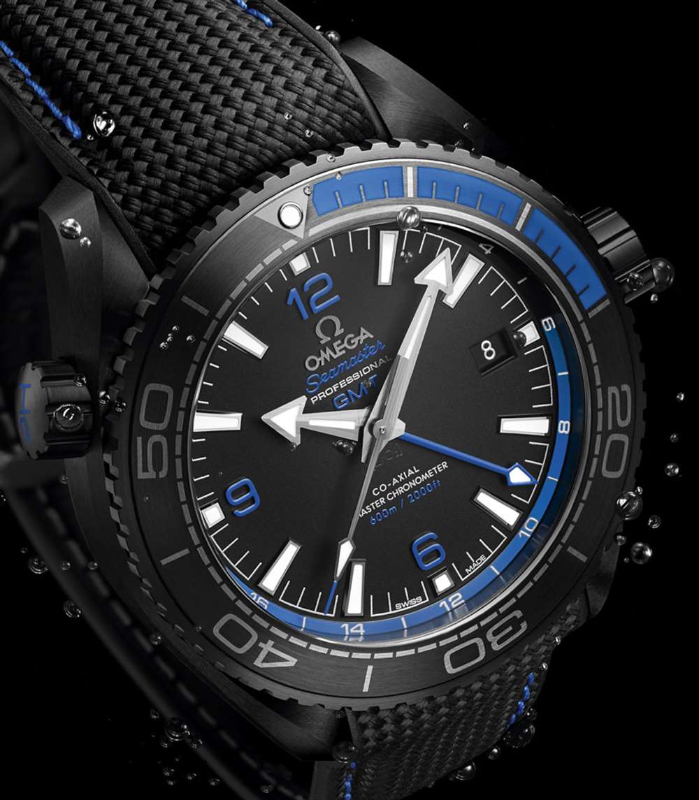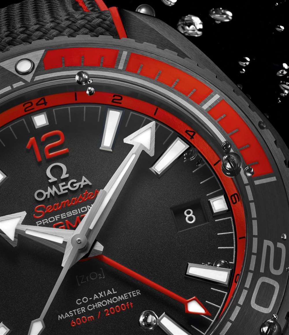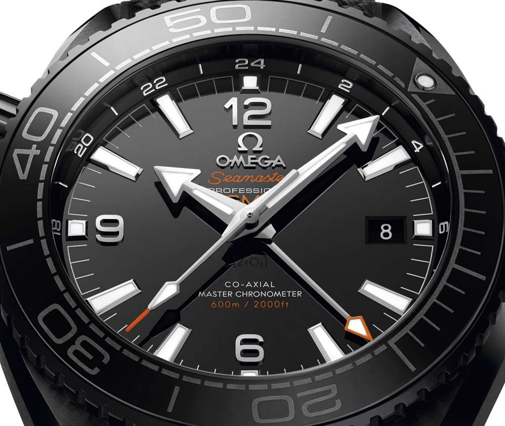 您還會注意到一些重要的撥號差異。43 毫米寬的 Planet Ocean GMT 具有 24 小時標記的旋轉表圈,而歐米茄海馬系列 Planet Ocean GMT Deep Black 具有傳統的 60 分鐘潛水表圈。歐米茄在表盤本身設計了一個 24 小時刻度 – 使其成為許多用戶的理想混合解決方案。黑色陶瓷表盤采用2016年新款阿拉伯數字,指針為18k白金或18k Sedna金(帶SuperLumiNova夜光材料)。