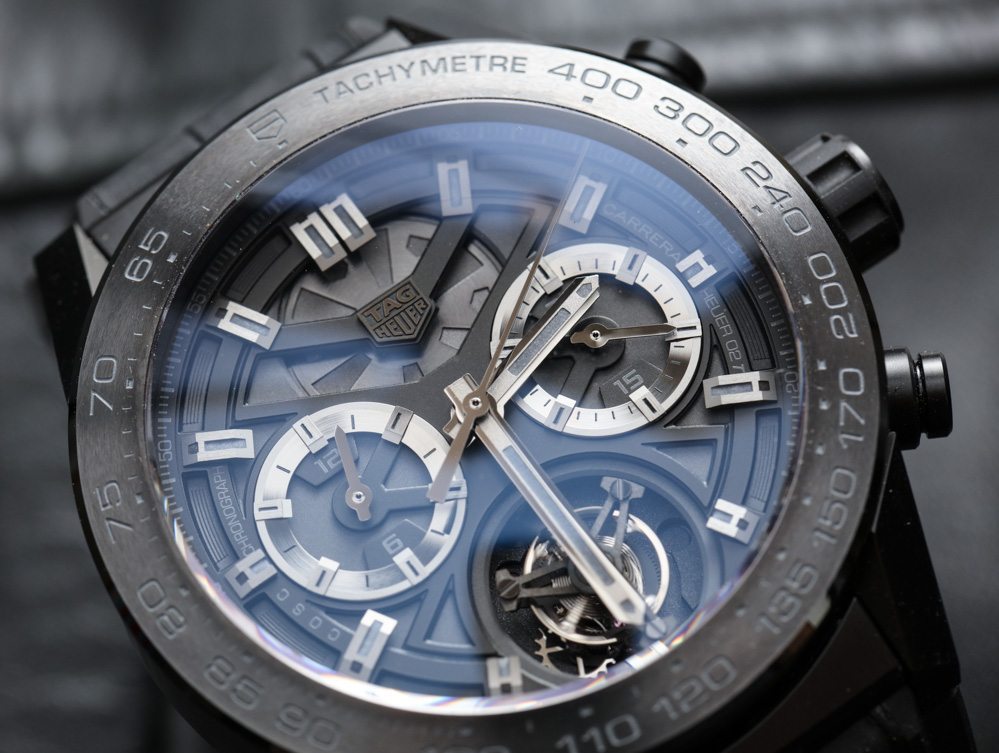 2012 年,他們推出了MikrotourbillonS,然后,就在最近的 2014 年,TAG Heuer 發布了Monaco V4 Tourbillon(在這里動手)。“皮帶驅動”并在頂部安裝橋板,Monaco V4 的陀飛輪以不同的方式設計,但它的價格也約為 170,000 美元。話雖如此,我應該指出,Heuer-02T 陀飛輪的設計靈感來自摩納哥 V4 陀飛輪的構造。TAG Heuer Carrera Heuer-02T Tourbillon 的價格也只是 Monaco Tourbillon 的一小部分,起價約為 16,000 美元。對于長期關注高端手表行業的人來說,這個數字似乎低得不可思議。