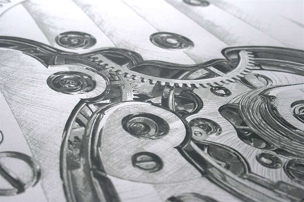 這件作品本身的靈感來自于網站背后的整個團隊,工作就像一個精心完成的動作,以保持事情的順利進行和文章的流動。從那里開始,這件藝術品似乎適合在我的寫實石墨風格中成為優雅精致的運動,為 aBlogtoWatch 定制適合場合的“雕刻”和隱藏的“復活節彩蛋”,例如照相機和隱藏為重量的電腦屏幕在擺輪上。