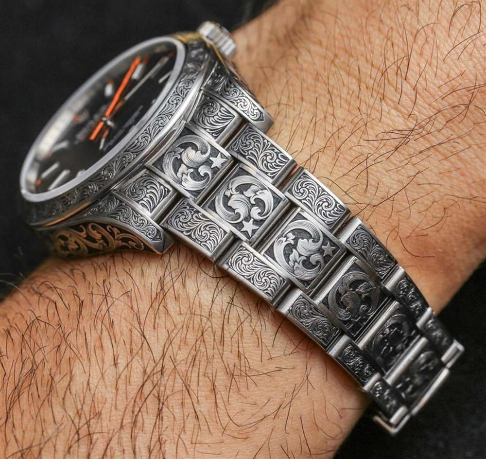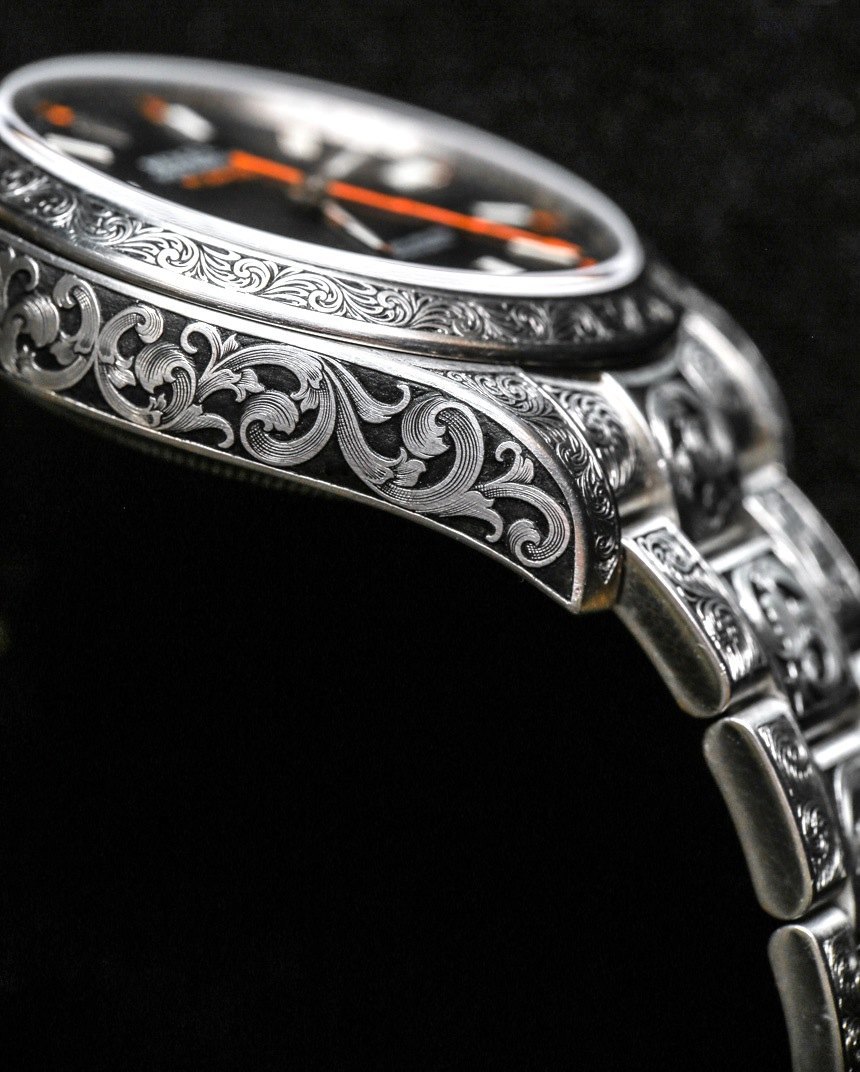 2015 年初,我有幸在 aBlogtoWatch 上首次亮相由 MadeWorn 提供的第一批雕刻勞力士手表。Blaine 單獨生產和構思,主要選擇勞力士手表,然后將它們交付給他居住在美國各地的專業槍支和刀具雕刻師的私人網絡。雖然 Blaine 可以做很多事情,但雕刻表殼不是其中之一——盡管他確實對好的工作很有眼光。據他說,大多數雕刻師,即使他們認為可以制作表殼,通常也做不到。作為客戶和雕刻師之間的中間人,他的部分價值在于確保最終產品是一流的,并且在美學上符合他的品味和期望。