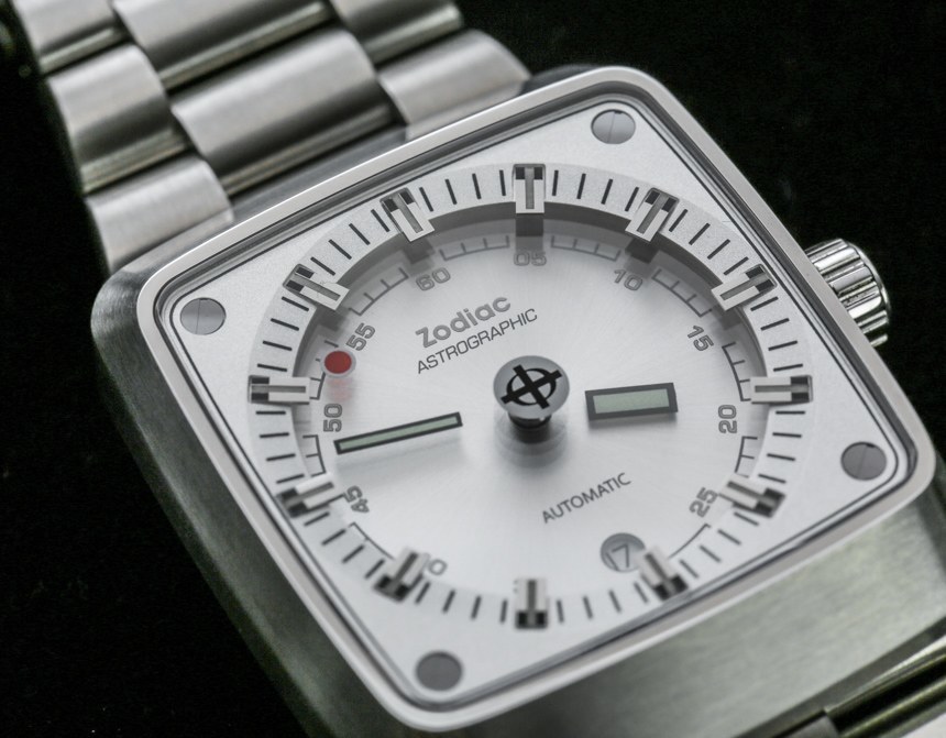 即使指針漂浮在空中,時針和分針以及涂有夜光體的時標仍然清晰易讀。這意味著在黑暗中具有良好的易讀性。我認為 Zodiac Astrographic 表盤的巧妙之處在于提供了一個明顯是“神秘表盤”的獨特設計,但提供了人們對日常佩戴的運動型手表所期望的可讀性。Zodiac Astrographic 的各種表盤版本中的每一個都會稍微改變指針和面部的顏色。我發現他們都很容易相處,但喜歡這個特別的 Zodiac Astrographic ref。ZO6601 銀色表盤與表殼相得益彰。
