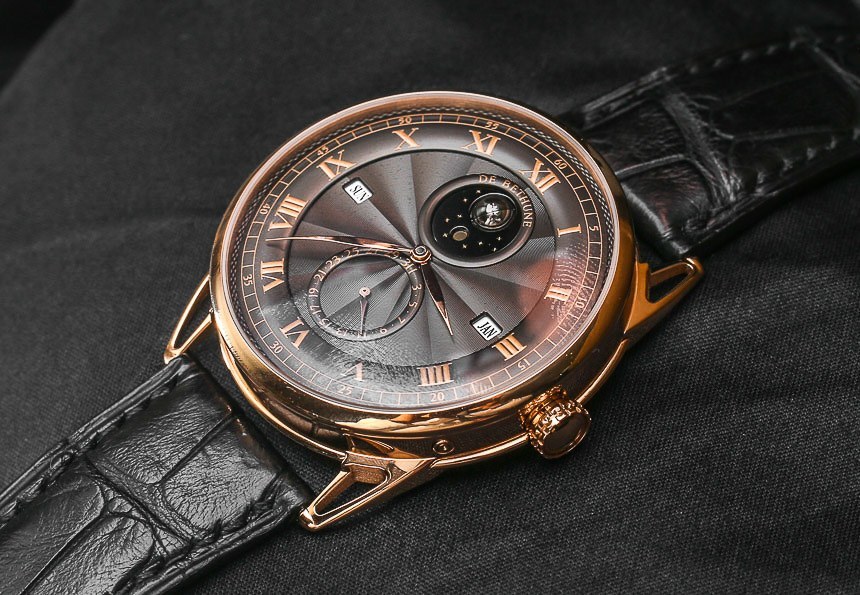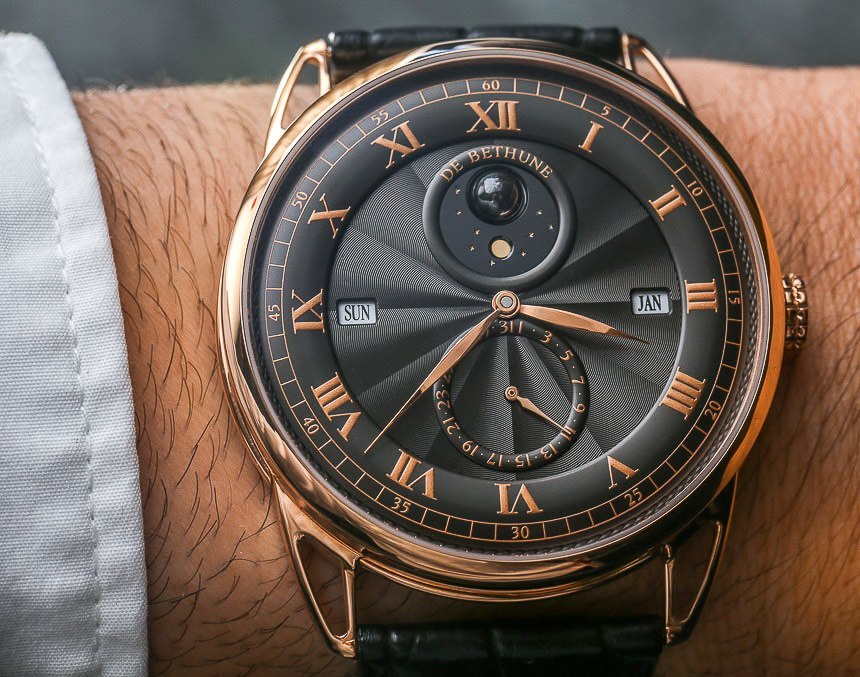 在 De Bethune DB25QP Perpetual Calendar 腕表的表盤上,您可以看到一個非常受古代琺瑯表盤懷表啟發(fā)的表盤,具有不同的層次和圓形表面。這與您從 De Bethune 看到的真正的鐘表復(fù)古設(shè)計差不多。我喜歡的是他們對這個表盤的處理也很現(xiàn)代,而且非常清晰。De Bethune 在發(fā)布新手表之前進行的大量調(diào)整是此過程的一部分,以幫助確保所有紋理和飾面都正確無誤。例如,即使表盤上的指針經(jīng)過拋光處理,它們也不會以有時讓人難以辨認(rèn)的方式反射光線。另外,請注意指針是如何向下彎曲到表盤的?這是另一個受古典啟發(fā)的細節(jié),是適當(dāng)易讀性的一部分。