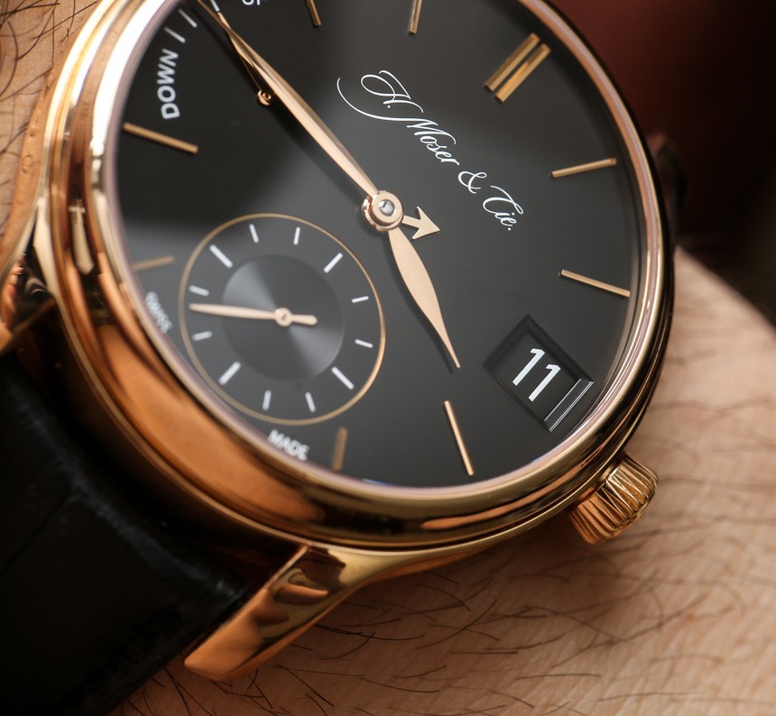 戴在手腕上的H. Moser & Cie. Endeavour Perpetual Calendar腕表寬40.8毫米,厚11.1毫米。對我來說,這是一個非常好的正裝手表尺寸,我發現即使穿短袖也很舒服(我很少穿長袖)。我提到這個是因為很多時候,如果你不穿長袖,較小的手表看起來非常嬌小。出于這個原因,在商業環境更多的寒冷城市,人們佩戴較小的手表來搭配長袖,而在洛杉磯和邁阿密等更溫暖的地方,更多的是“休閑文化”,你大多穿短袖,人們佩戴較大的手表.