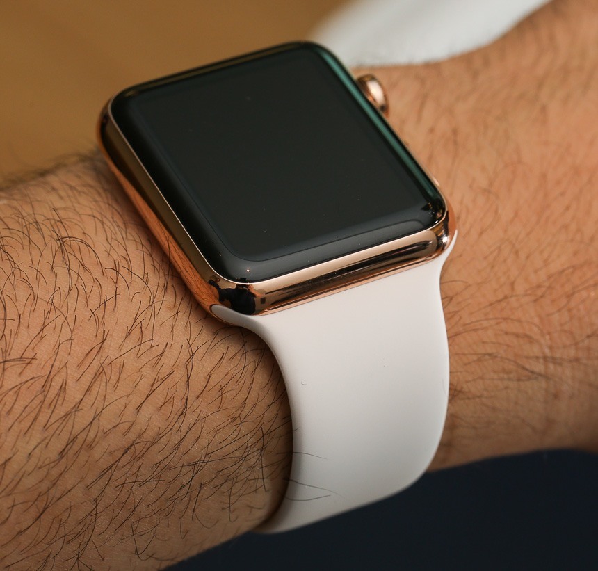 Apple Watch Edition 還提供 18k 玫瑰金或 18k 黃金,有 38 毫米高和 42 毫米高兩種尺寸。我發(fā)現(xiàn) Apple 提供兩種黃金版本很有趣,因?yàn)樵谌缃竦氖直硎澜缰校?8k 黃金實(shí)際上并不常見(jiàn)(與玫瑰金相比)。您可能知道,Apple 創(chuàng)造了他們自己的 18k 金合金形式,他們聲稱(chēng)這種合金比普通 18k 金更硬,因此更耐刮擦。隨著時(shí)間的推移,這對(duì) Apple Watch Edition 表殼的外觀產(chǎn)生了很大的影響。