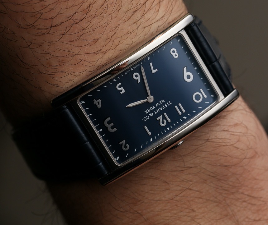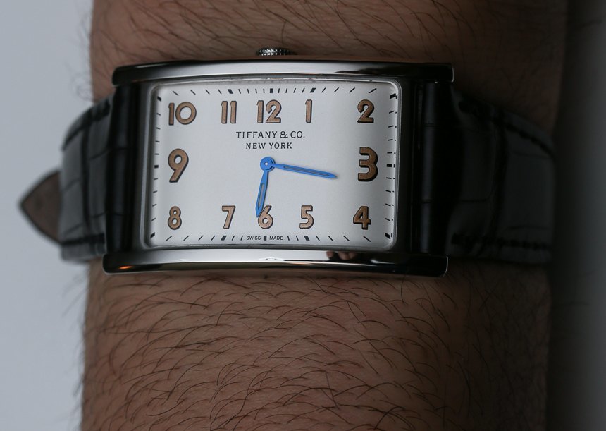 那么實際閱讀時間呢?那么這是一個很好的問題,現在不是嗎?像往常一樣看著您的手腕會迫使您在心里將表盤向左移動 45 度以上。有了完整的阿拉伯時標,這并不太難,但正如我上面提到的,時間確實在它的一邊。Tiffany & Co. East West 證明有用的地方是當您的手在您面前時,例如在開車或在電腦上打字時。從這個角度來看,閱讀時間實際上很容易……我敢說,與“標準”模擬手表表盤相比,Tiffany & Co. East West 更“容易”。