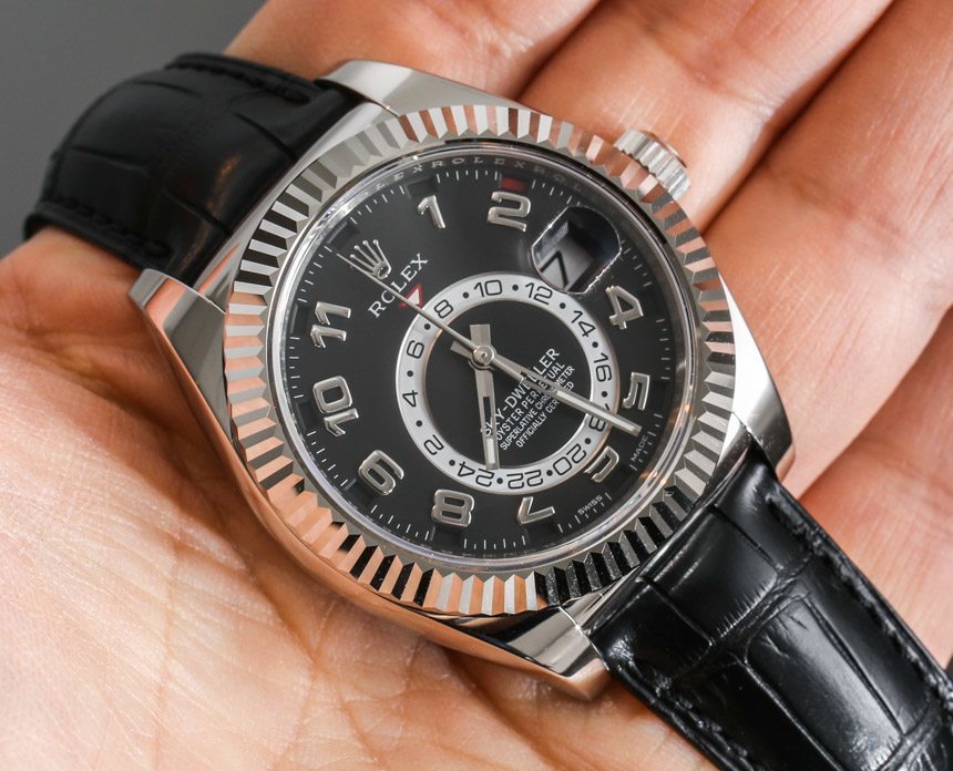 當勞力士首次推出勞力士 Sky-Dweller 時,它只有黃金材質——但有 18k 金、玫瑰金 (Everose) 和白金。2014 年,勞力士將腕表系列翻了一番,從三款增加到六款。仍然沒有任何新的材料選項,但有新的表盤樣式(本文中介紹的那些型號),以及表帶或手鐲的新選項。您會注意到,勞力士在表帶上提供勞力士 Sky-Dweller 的某些表盤版本,在配套的 18k 金手鏈上提供其他表盤版本。