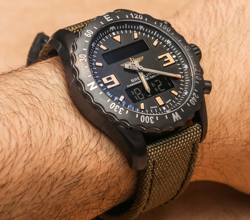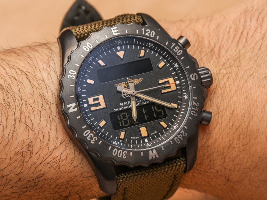 Breliting Chronospace Military 的 46 毫米寬并不小,但 Chronospace 從來都不是(它也恰好有 15.6 毫米厚)。它也不是百年靈生產的最大的石英表。上面提到的百年靈駕駛艙 B50 和百年靈緊急事件 II 手表的表殼直徑更大。然而,Breliting Chronospace Military 確實佩戴舒適,佩戴它的“真正的男人”會發現表殼的黑色 – 以及它在表帶上的位置使其佩戴起來比你想象的要小一些。盡管如此,這是一塊大手表,而且無法繞過它。那些對較小的模擬/數字 Breitling 感興趣的人應該看看像Breitling Aerospace Evo 這樣的東西(在這里動手)。廣告留言廣告信息結束