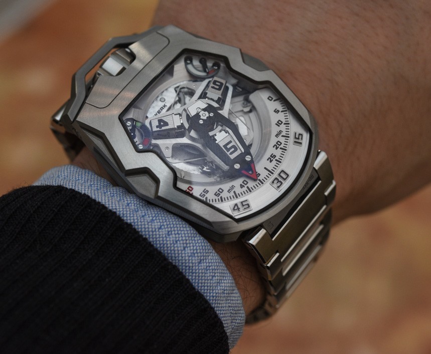 2015 年,總部位于日內瓦的Urwerk終于推出了帶有 UR-210S“全金屬外殼”手鏈的全新限量版手表。我們最后一次(也是第一次)在手鐲上看到很酷的 Urwerk 時計是在 2011 年,當時Urwerk 發布了 UR-202S 全金屬外殼(在這里動手),它采用拉絲鋼和黑色涂層鋼。Urwerk 實際上為 UR-210S 使用了幾乎相同的手鏈。是的,很高興看到他們做一些不同的手鐲設計,但與此同時,Urwerk UR-202S 手表非常有限,現在 Urwerk 收藏家有機會享受其中一款金屬表鏈上的品牌時計。