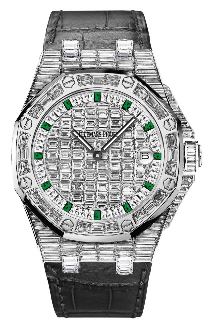 在SIHH 2015 鐘表展上,愛(ài)彼 (?Audemars Piguet?) 悄悄發(fā)布了幾款非常響亮的手表,這些手表是各種皇家橡樹(shù)離岸型系列時(shí)計(jì)的全密鑲鉆石版本。雖然 Audemars Piguet 歷來(lái)以純粹的制表工藝和傳統(tǒng)設(shè)計(jì)而聞名,但如今該品牌在提供奢華生活方式時(shí)計(jì)和具有豐富瑞士制表傳統(tǒng)的時(shí)計(jì)之間存在分歧。那些對(duì)后者最感興趣的人可能會(huì)嘲笑所有鑲鉆的皇家橡樹(shù)手表,但愛(ài)彼(尤其是皇家橡樹(shù)離岸型)確實(shí)是一款非常受喜歡炫耀地位和財(cái)富的人歡迎的手表。