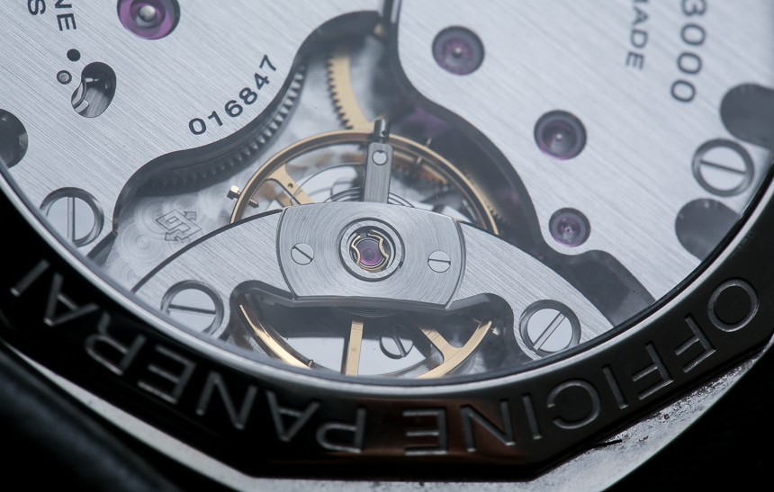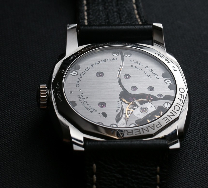 P.3000 是一款簡(jiǎn)單而優(yōu)雅的機(jī)芯。表橋設(shè)計(jì)極具吸引力,工業(yè)設(shè)計(jì)與優(yōu)雅的結(jié)合顯而易見,很難像沛納海那樣精通。P.3000 以 21,600 bph (3Hz) 的頻率運(yùn)行,具有 72 小時(shí)的動(dòng)力儲(chǔ)存。在功能上,機(jī)芯提供帶小秒盤的時(shí)間和日期。當(dāng)您將表冠拉出一個(gè)位置時(shí),時(shí)針會(huì)在一小時(shí)內(nèi)移動(dòng)一圈,這對(duì)于旅行以及如何設(shè)置日期很有用。盡管與傳統(tǒng)的快速設(shè)置日期相比,它確實(shí)使調(diào)整日期有點(diǎn)麻煩。