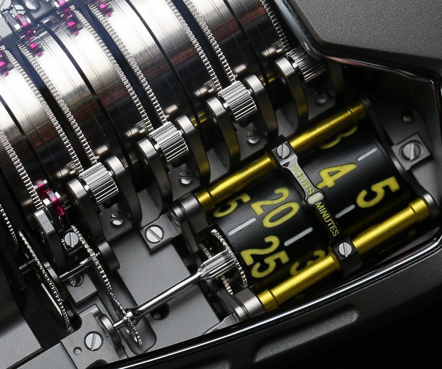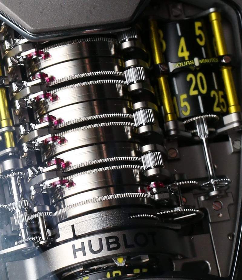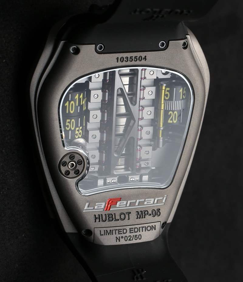 現在,如果你是一個鐘表愛好者,并且 Hublot MP-05 LaFerrari 手表的機械和設計比 Hublot 與法拉利的業務關系更有趣,那么你會想知道的是 Hublot MP-05 LaFerrari 手表擁有地球上所有機械表中最長的動力儲存。看到機芯中央的那一堆桶了嗎?在 11 個主發條盒之間,內部制造和設計的 Hublot 口徑 HUB9005.H1.6 機芯具有 50 天的動力儲存。那是大約 1,200 小時。僅作比較,標準機械機芯的動力儲存約為 42 小時。