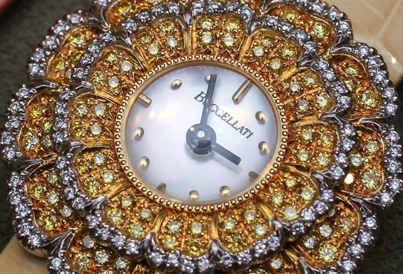 珠寶手表非常華麗,采用了 Buccellati 汲取的豐富意大利設計傳統(tǒng)。也許他們最具標志性的女士手表是在他們稱之為 Buccellati Cleopatra 手表的 Buccellati 袖口上打造的,它有正常尺寸和微型尺寸(袖口更薄)兩種版本。Cleopatra 袖口由黃金制成,有一個隱藏的接頭,可以戴上和脫下袖口。這些手鐲當然可以不帶表盤,所以從某種意義上說,這些是他們純珠寶首飾的真正演變。