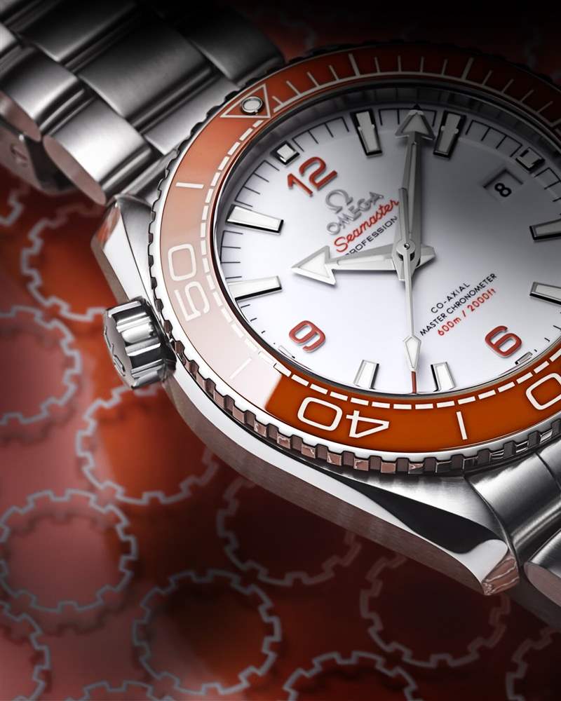 當然,更加專業的潛水表愛好者或許會將海洋宇宙600米表43.5毫米至臻天文臺鋼殼搭配 NATO 表帶款當作更適合日常佩戴的選擇,考慮到該表16.1毫米的厚度比前者的14.5毫米某些大出不少,選擇牢固而輕巧的 NATO 表帶就更加保證了其長時間佩戴的舒適性。白色陶瓷表盤上貼鑲橙色阿拉伯數字時標,帶有橙色陶瓷的單向旋轉表圈上的潛水刻度覆以液態陶瓷和 Super-LumiNova 夜光涂層,顯然它不僅色彩艷麗、反差強烈,而且在陽光明媚的夏天特別應景,無論是在陸地還是水中都十分具有存在感。