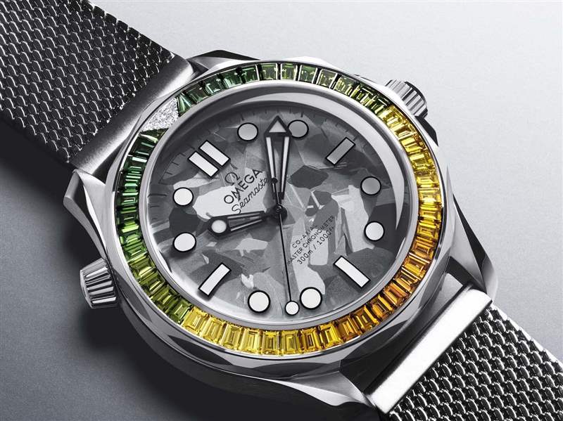對(duì)于007詹姆斯·邦德「專屬」海馬300表款著迷的鑒賞家與收藏家大有人在,如今他們有了最新的選擇:為了慶祝007系列電影上映60周年,歐米茄新推出了奢華旗艦級(jí)產(chǎn)品海馬系列300米潛水表42毫米至臻天文臺(tái)表詹姆斯·邦德60周年紀(jì)念表 Canopus 18K金款。該表采用 Canopus 18K金打造,搭配天然灰色硅質(zhì)表盤(pán),呼應(yīng)特工007藏身加勒比海時(shí)的沙灘。表盤(pán)搭配單向旋轉(zhuǎn)表圈,其上鑲嵌著不同色澤的鉆石,使得表圈整體呈現(xiàn)出由暗綠色至黃色的漸變效果,十分引人注目。藍(lán)寶石玻璃表背飾以微結(jié)構(gòu)金屬噴鍍技術(shù)制成的圖案,再現(xiàn)007系列電影的經(jīng)典開(kāi)場(chǎng)——邦德剪影和螺旋形槍膛線。這種「摩爾」紋的動(dòng)態(tài)效果與「棒棒糖」型中央秒針同步運(yùn)行,循環(huán)往復(fù),特別具有趣味性。