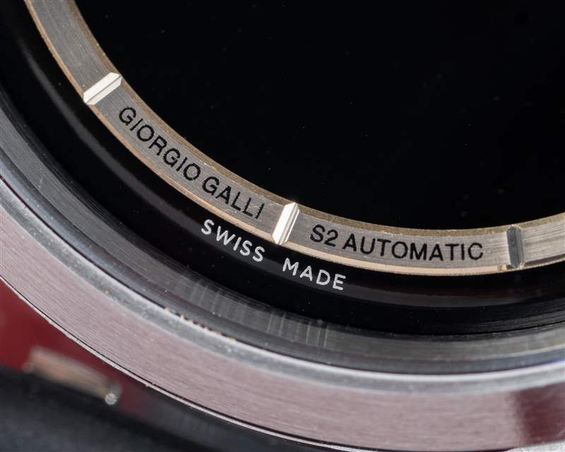 方尖碑手機經過高度拋光和倒角處理,使其具有 S1 所缺乏的深度,但在某些角度,它可能會在黑色的襯托下消失。如果沒有任何流明,它在弱光下就沒有機會。(我仍然會選擇沒有夜光的手表,而不是像 S1 這樣夜光較差的手表。)但整個手表最顯著的美學變化是鋼制小時環,它具有拉絲表面和用于標記小時的凹口,喬治·加利 (Giorgio Galli) 和型號名稱位于六位,位于表盤上“瑞士制造”的上方。它具有金色光澤,盡管該品牌在任何地方都沒有這樣描述它,所以我不能說它上面是否有涂層。