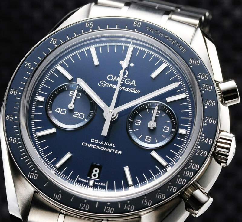 同屬超霸系列的雙小表盤款式44.25毫米同軸計時表,是品牌具有代表性的表款,以登月表為號召,自然也必須凸顯其在現(xiàn)代科技方面的創(chuàng)新。這款表配備藍色亮漆表盤,9時位置設有小秒針副表盤,3時位置的副表盤則設有12小時計時盤及60分鐘計時盤,這一特別的布置使之與其它常見的計時表明顯區(qū)別開來。44.25毫米5級鈦金屬表殼配備設有測速刻度的拋光藍色陶瓷表圈,搭配鈦金屬表鏈,具有超強的實用性。
