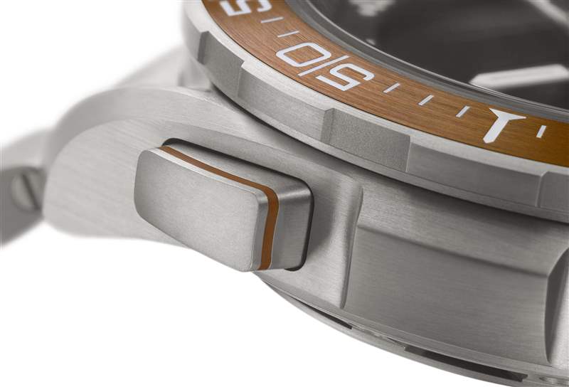 除了計時表之外,專業(yè)潛水表也是特別適合選擇鈦材質(zhì)制作表殼,這一方面能夠在保持表款整體堅固的同時起到減重的作用,另外也可以讓人們?nèi)粘E宕鲿r更加舒適。典型的代表便是海馬系列海洋宇宙腕表45.5毫米至臻天文臺表 Ultra Deep:歐米茄的 Ultra Deep 腕表曾下潛至馬里亞納海溝最深處,締造了腕表深潛的世界紀錄,而其批量制造的民用版本 Ultra Deep 防水深度也高達6,000米(20,000英尺),并通過了國際標準化組織(ISO) 6425:2018有關(guān)飽和潛水表的認證。這款表直徑45.5毫米,厚度則為18.1毫米,產(chǎn)品總重量僅(約)123 克,與普通的潛水表相差無幾。當然其表殼與表帶是采用經(jīng)過噴砂處理的5級鈦金屬打造的。
