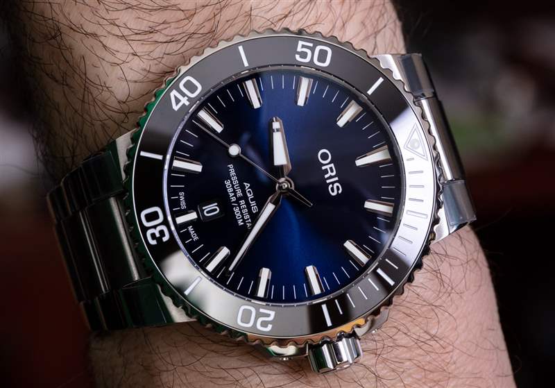 大多數(shù) Aquis 手表最容易識別的元素是表殼、表鏈、表盤和指針。雖然絕不激進,但這些元素可以清楚地識別為來自 Oris。這一點很重要,因為當談到制作精良的潛水表的價值定價時,最常見的權(quán)衡之一是獨特的外觀。換句話說,大多數(shù)預算(甚至是瑞士)潛水表或多或少看起來像市場上的其他時計。有了 Oris,您就沒有這個問題。