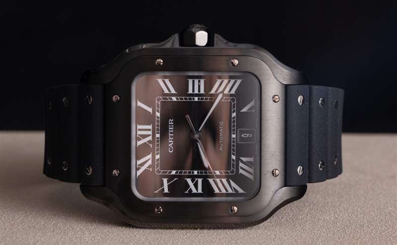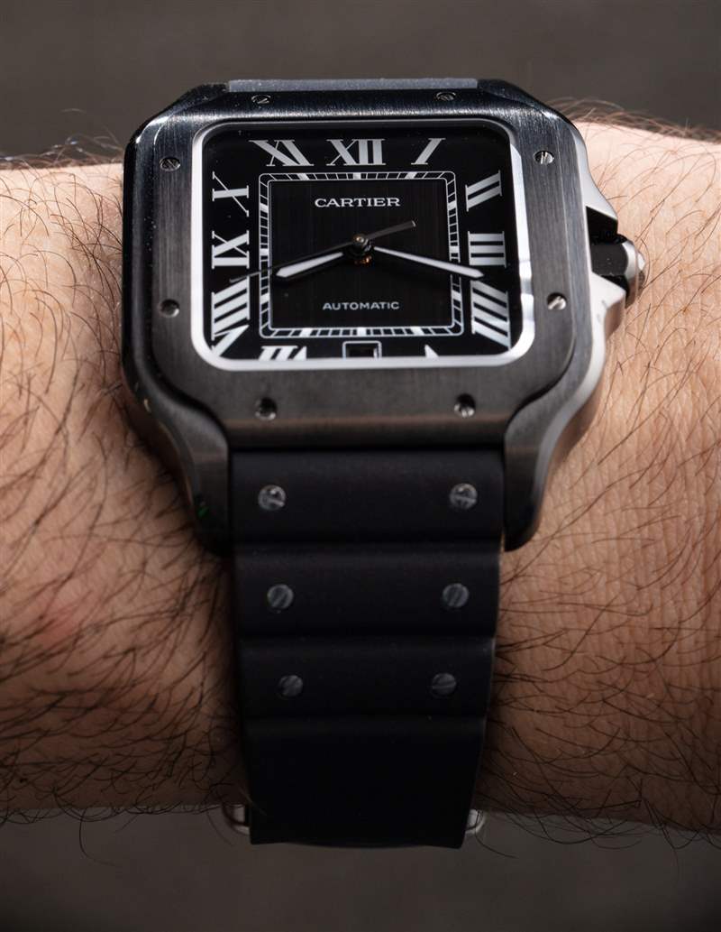 請注意,這款 Cartier Santos 參考 WSSA0039 并不是 Santos 第一次獲得黑色處理。早在 2016 年,aBlogtoWatch 就親身體驗了之前的“黑色 Santos”,即卡地亞 Santos 100 Carbon 手表。如今,手表名稱中的“碳”可能意味著表殼是由碳制成的。相反,碳被用作卡地亞在鋼上使用的涂層的參考,這是一種稱為 aDLC 的 DLC(類金剛石碳)形式。這款 2020 黑色 Santos 擁有 39.8 毫米寬的方形表殼,厚度為 9.38 毫米,防水深度達 100 米。廣告訊息廣告信息結束