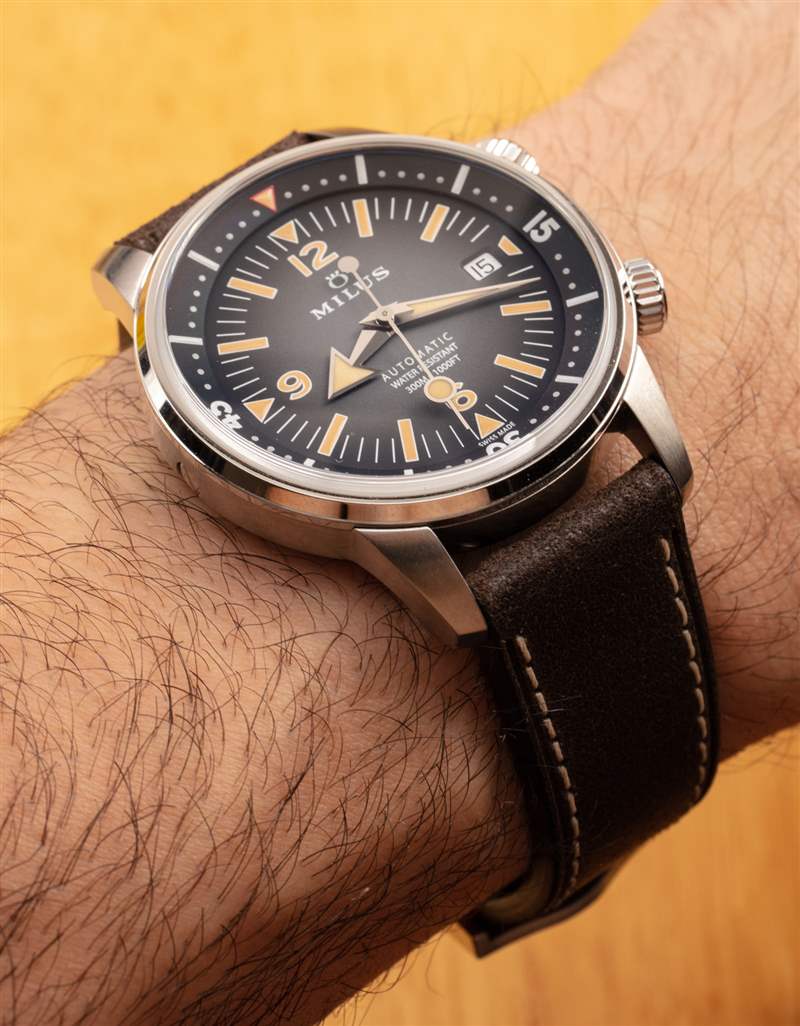 現(xiàn)代Milus最具運動感的手表是阿基米德系列。以著名的希臘發(fā)明家和數(shù)學家(大約公元前 200 年)命名,阿基米德是一款潛水表,可以追溯到 1970 年代同樣由瑞士 Milus 品牌生產(chǎn)的“超級壓縮機”時計。Milus 格外小心地將阿基米德定位為“紳士的潛水員”,這意味著雖然它可以很容易地用于游泳和休閑潛水任務,但這款手表主要是為日常佩戴和社交場合而設計的。沒有錯。