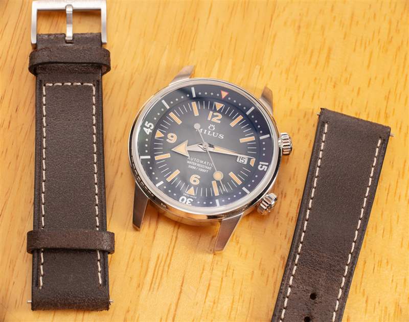 這些 Milus Archimedes 手表包括兩條不同的漂亮表帶,它們是棕色編織尼龍織物,帶有皮革襯里或棕色絨面革。它們看起來確實不錯,但如果你問我,它們會相當僵硬。我個人不喜歡硬帶,所以我可能會換一條帶。Milus 可能會通過在其網(wǎng)站上添加表帶部分來賺取更多收入,但在撰寫本文時,這還不可用(盡管您可以從他們的網(wǎng)站上購買手表)。