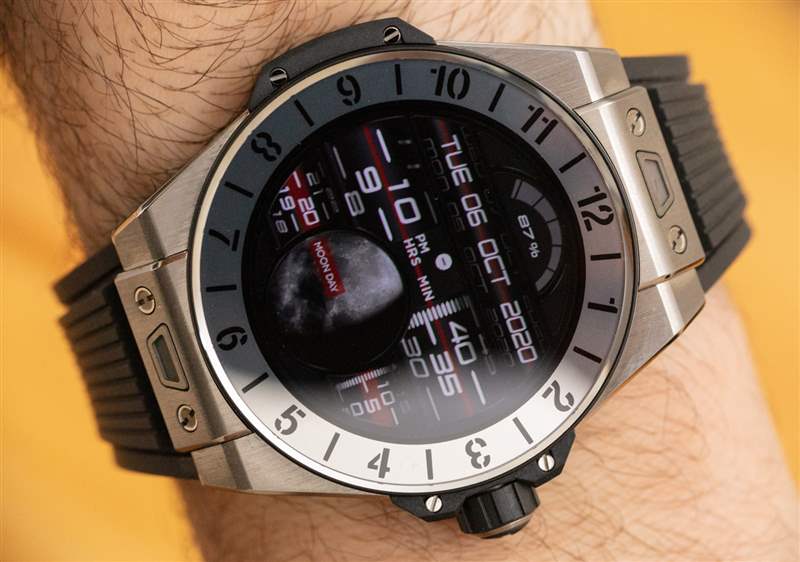 作為一名智能手表愛好者,我最喜歡宇舶 Big Bang e 的地方在于整體設(shè)計(jì)和佩戴體驗(yàn)。智能手表在短短幾年內(nèi)取得了長(zhǎng)足的進(jìn)步,尤其是在始終在線的屏幕亮度和技術(shù)方面。幾年前,智能手表有黑色、空白屏幕是常態(tài),但今天,隨著更現(xiàn)代的技術(shù),智能手表在戴在手腕上時(shí)不需要有空白的臉。結(jié)果是一種更傳統(tǒng)的腕表佩戴體驗(yàn),包括表殼和表帶設(shè)計(jì)的表現(xiàn)力——包括表盤本身的設(shè)計(jì)。在我看來,這是一件大事。廣告訊息廣告信息結(jié)束