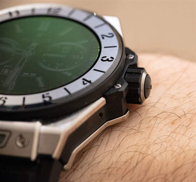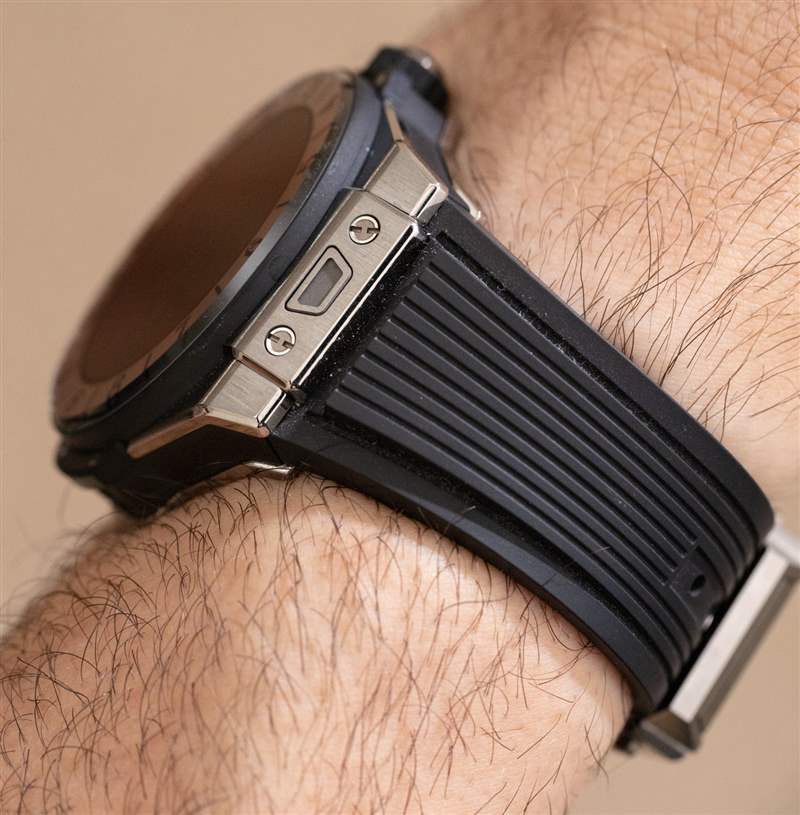 何為大事?因?yàn)樗兄?Big Bang e 的佩戴體驗(yàn)與標(biāo)準(zhǔn) Big Bang 的佩戴體驗(yàn)驚人地相似。不,手表并不完全相同,但我第一次佩戴了一款我經(jīng)常忘記是智能手表的豪華智能手表。這意味著 42 毫米寬的表殼尺寸(約 13 毫米厚,??約 55 毫米的表耳到表耳距離,以及 30 米防水)Big Bang e 的尺寸與其機(jī)械表親的尺寸大致相同——而且它們都具有相似的表殼材料和飾面。在許多方面,宇舶 Big Bang e 佩戴者與傳統(tǒng) Big Bang 腕表佩戴者非常契合。因此,雖然宇舶 Big Bang e 對(duì)于智能手表來說價(jià)格昂貴,但對(duì)于宇舶來說卻是相對(duì)便宜的。