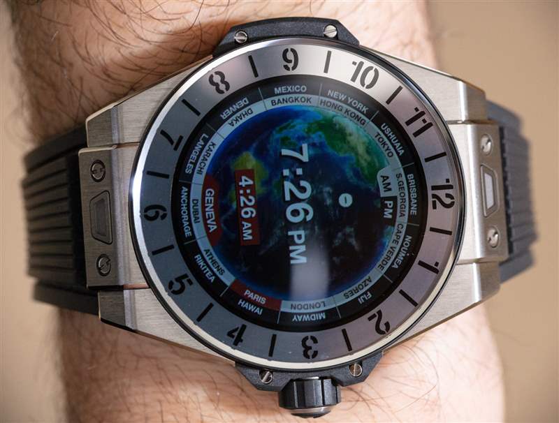 宇舶表提供了幾個(gè)版本的 Big Bang e,包括這款鈦金屬表殼表款以及藍(lán)色或黑色陶瓷表款。它們都在表圈和宇舶表精心設(shè)計(jì)的易于釋放的表帶更換系統(tǒng)上安裝了藍(lán)寶石水晶。彩色觸摸屏與藍(lán)寶石水晶的結(jié)合做得非常好,因?yàn)楸肀P感覺它根本沒有沉入,而是就在屏幕的最頂部,就好像它漂浮在藍(lán)寶石水晶中一樣。屏幕很亮,觸摸屏反應(yīng)靈敏。