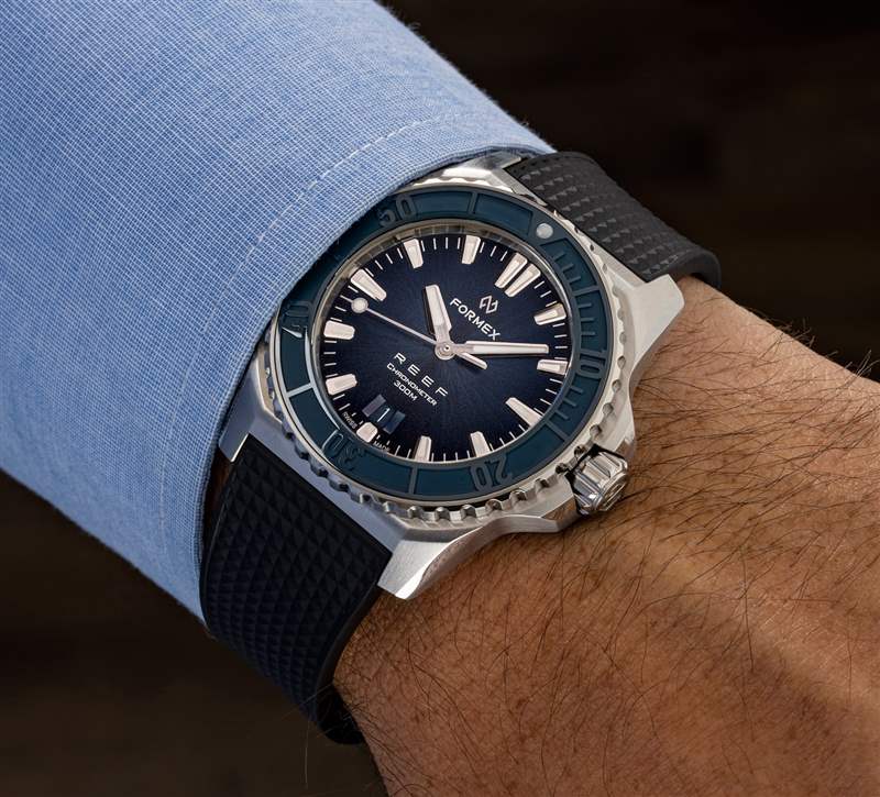 2020 年末看到瑞士Formex發(fā)布其迄今為止最受期待的現(xiàn)代手表之一:REEF 自動(dòng)天文臺(tái) COSC 300M。REEF 以運(yùn)動(dòng)/正裝 Formex Essence 系列的成功為基礎(chǔ),向不斷發(fā)展的精品機(jī)械制表商推出了第一款現(xiàn)代潛水表。社區(qū)一直是 Formex 的一切,它不僅通過(guò)允許產(chǎn)品個(gè)性化的在線配置工具推出 REEF 系列,而且 REEF 名稱本身實(shí)際上是通過(guò)在 aBlogtoWatch 上與鐘表愛(ài)好者社區(qū)進(jìn)行的促銷活動(dòng)選擇的。這是一款專為當(dāng)今充滿激情和挑剔的手表愛(ài)好者而設(shè)計(jì)的時(shí)計(jì)。Formex 在遙遠(yuǎn)的過(guò)去曾有過(guò)一些潛水風(fēng)格的手表,但 Reef 是其第一款真正現(xiàn)代的潛水手表,代表了 Formex 品牌當(dāng)前的個(gè)性。