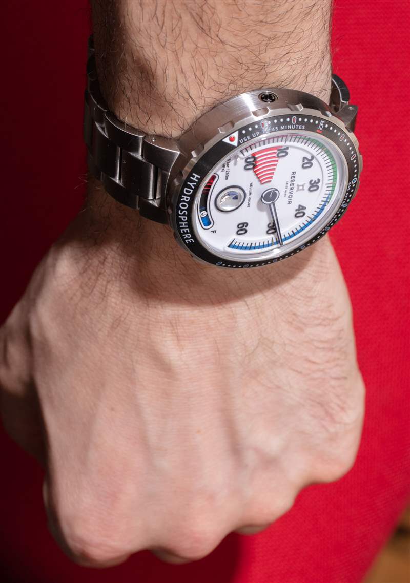 Reservoir 生產了幾個版本的 Hydrosphere 時計,其表盤顏色和表殼材料各不相同。我特別喜歡 Hydrosphere Air Gauge,因為正如產品名稱所暗示的那樣,表盤很容易讓人聯想到模擬空氣壓力計。這種特殊的 SCUBA 潛水儀器的一個有趣的事情是,大多數 BCD 裝置(裝有空氣罐的背心潛水員服裝)都有一個看起來幾乎與手表相同的氣壓計。這意味著今天大多數休閑潛水員都使用過這樣的氣壓計并通過視覺識別它們。為什么這很重要?因為 Reservoir Hydrosphere Air Gauge 是當今僅有的在視覺上與當今潛水設備相匹配的豪華潛水表之一。這意味著手表表盤不僅對手表愛好者來說既相關又熟悉,廣告訊息廣告信息結束